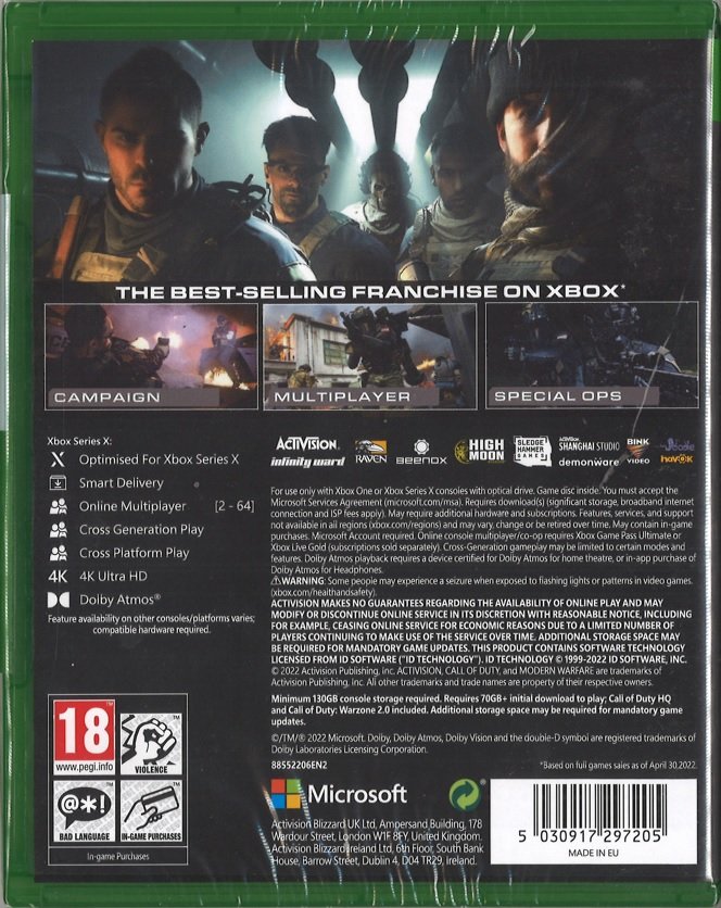 Ta edycja Call of Duty Modern Warfare II zawiera wersje gry na Xbox One oraz Xbox Series X. Do uruchomienia wybranej wersji gry niezbędne jest posiadanie odpowiedniej konsoli. Może też być wymagane pobranie dodatkowych danych z internetu.