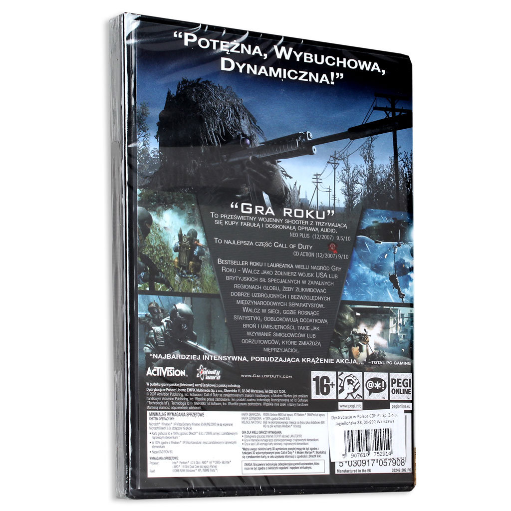 Gra, która zrewolucjonizowała gatunek strzelaninKilkadziesiąt nagród dla najlepszej gry rokuRozbudowany tryb wieloosobowyKilkanaście milionów sprzedanych egzemplarzyGra z gatunku FPS należąca do bestsellerowego cyklu, kojarzonego pierwotnie wyłącznie z II wojną światową. W czwartej części utalentowani twórcy z firmy Infinity Ward postanowili jednak zerwać z tradycją, serwując nam konflikt zbrojny z przełomu XX i XXI wieku. Za tą wojenną zawieruchą stoi rosyjski skrajny nacjonalista nazwiskiem Zakajew, inspirujący światowy terroryzm, celem odwrócenia uwagi mocarstw od swojej próby zagarnięcia władzy w ojczyźnie. Przejmujemy oczywiście kontrolę nad postaciami rozmaitych żołnierzy, uczestniczącymi we wspomnianych działaniach militarnych.