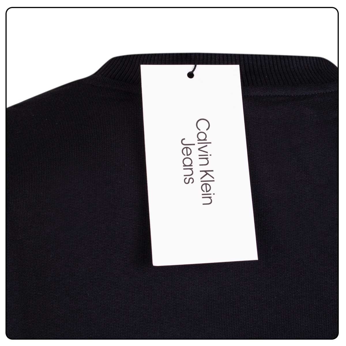Na przodzie nadrukowany napis "CALVIN KLEIN JEANS" oraz logo "ck". Bluza jest wkładana przez głowę, nie posiada kaptura ani kieszeni. Tył bluzy bez wzorów. Bluza wykonana z najwyższej jakości materiałów co zapewnia wygodę oraz komfort.