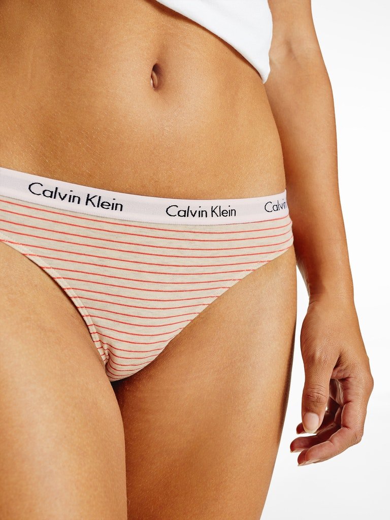 Marka: CALVIN KLEINModel: stringiOpakowanie: 1 paraKod producenta: 0000D1617E WANProdukt: damskiKolor majtek: kremowy w czerwone paskiMateriał: 90% bawełna, 10% elastanLogo: na gumce napisy "Calvin ...