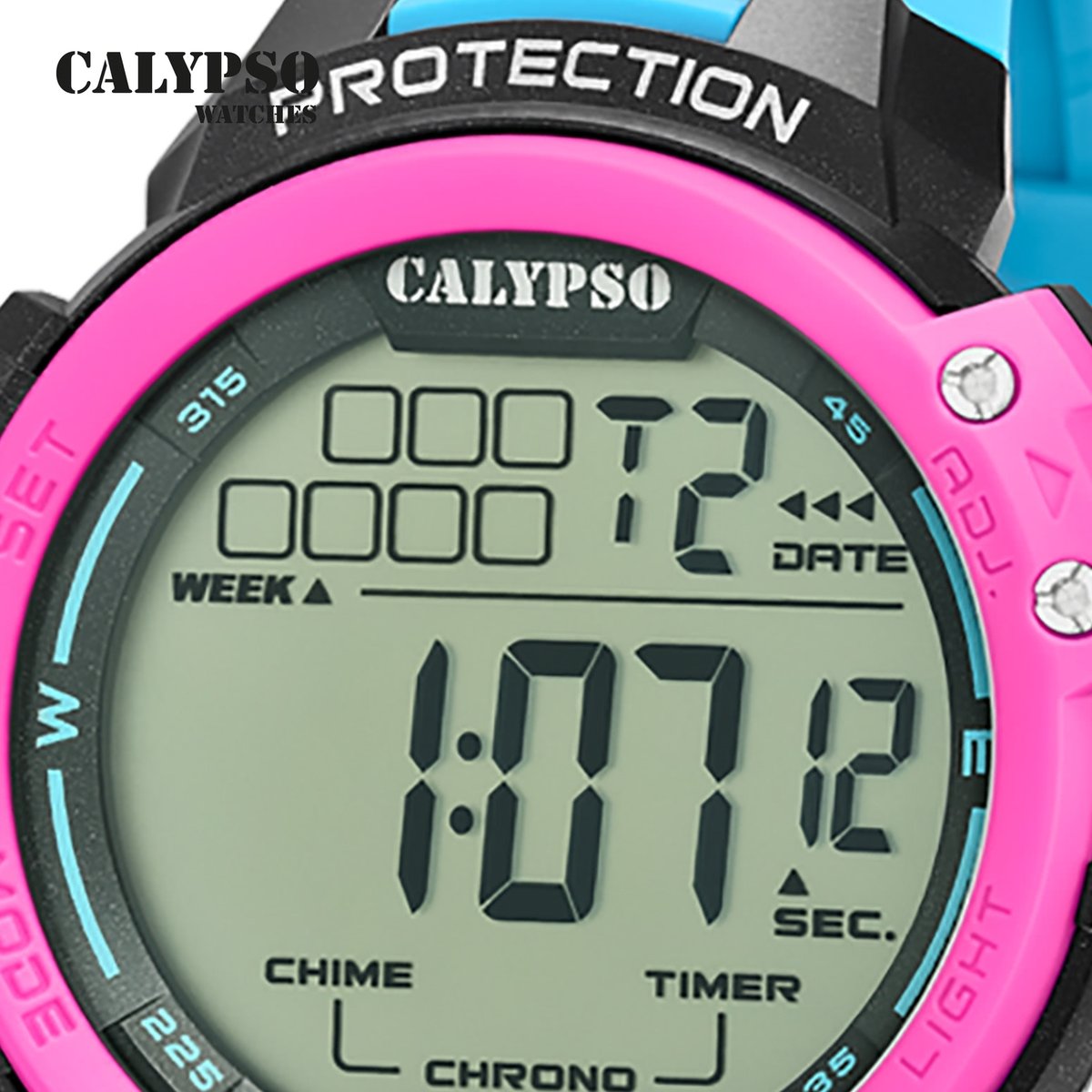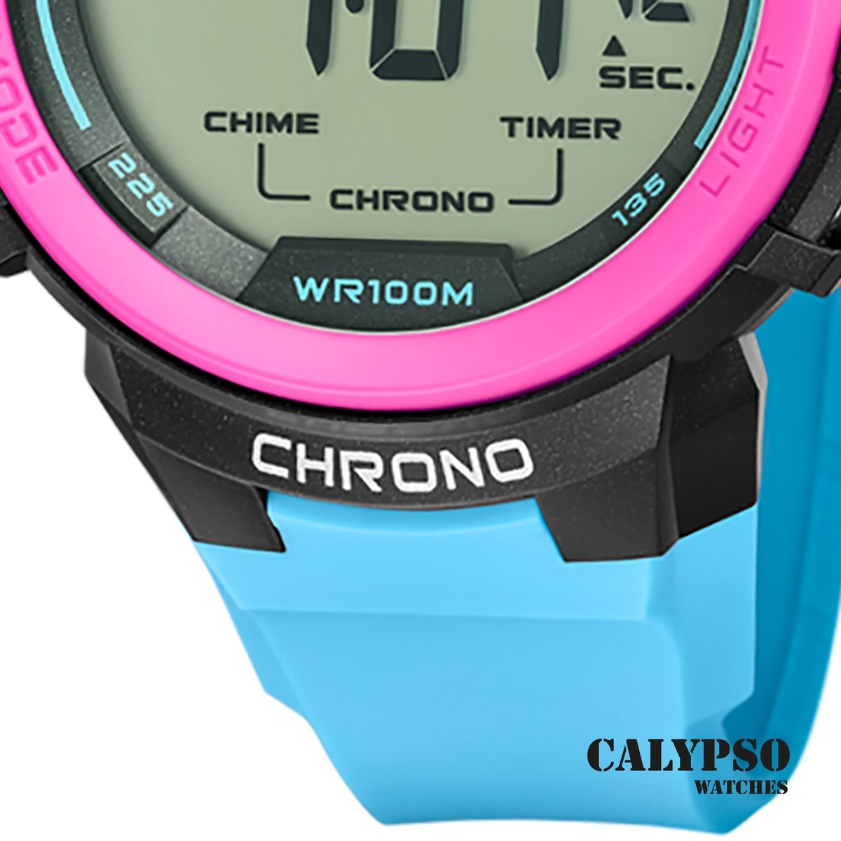 Ten wyjątkowy zegarek męski z aktualnej kolekcji Calypso Digital gwarantuje wysoki komfort noszenia dzięki wysokiej jakości plastikowemu paskowi w kolorze niebieskim . Zegarek na rękę z cyfrowym wyświetlaczem i precyzyjny zegarek na rękę to niezawodny towarzysz w życiu codziennym i czasie wolnym.
