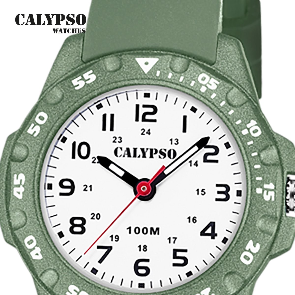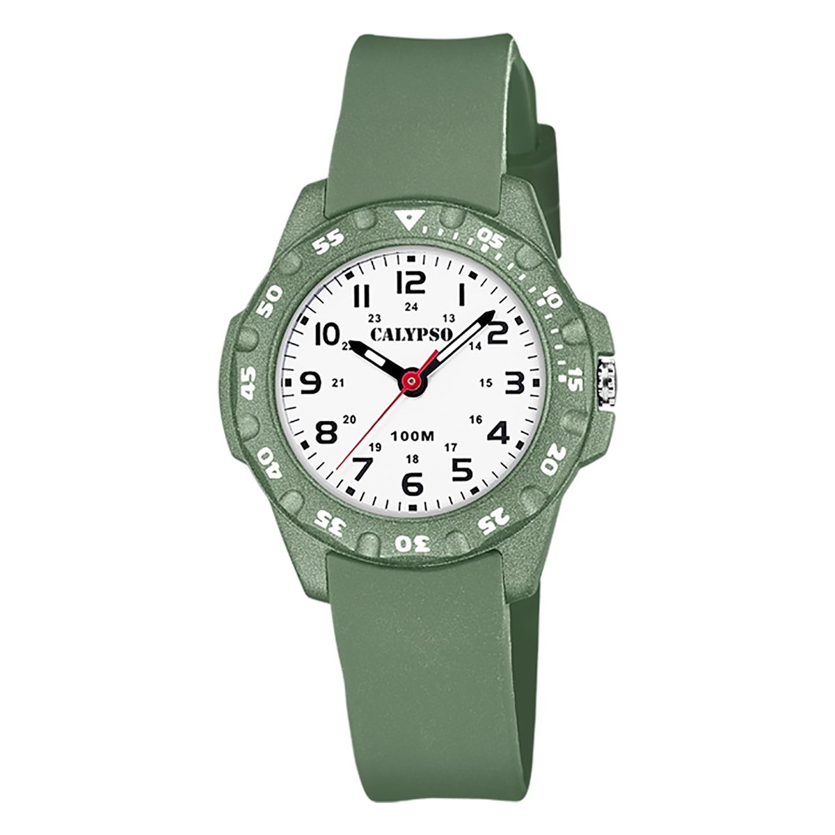 Ten wyjątkowy zegarek młodzieżowy z aktualnej kolekcji Calypso Junior gwarantuje wysoki komfort noszenia dzięki wysokiej jakości plastikowemu paskowi w kolorze zielonym . Zegarek na rękę z wyświetlaczem analogowym i precyzyjny zegarek na rękę to niezawodny towarzysz w życiu codziennym i czasie wolnym.