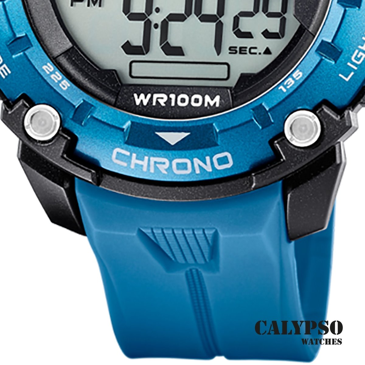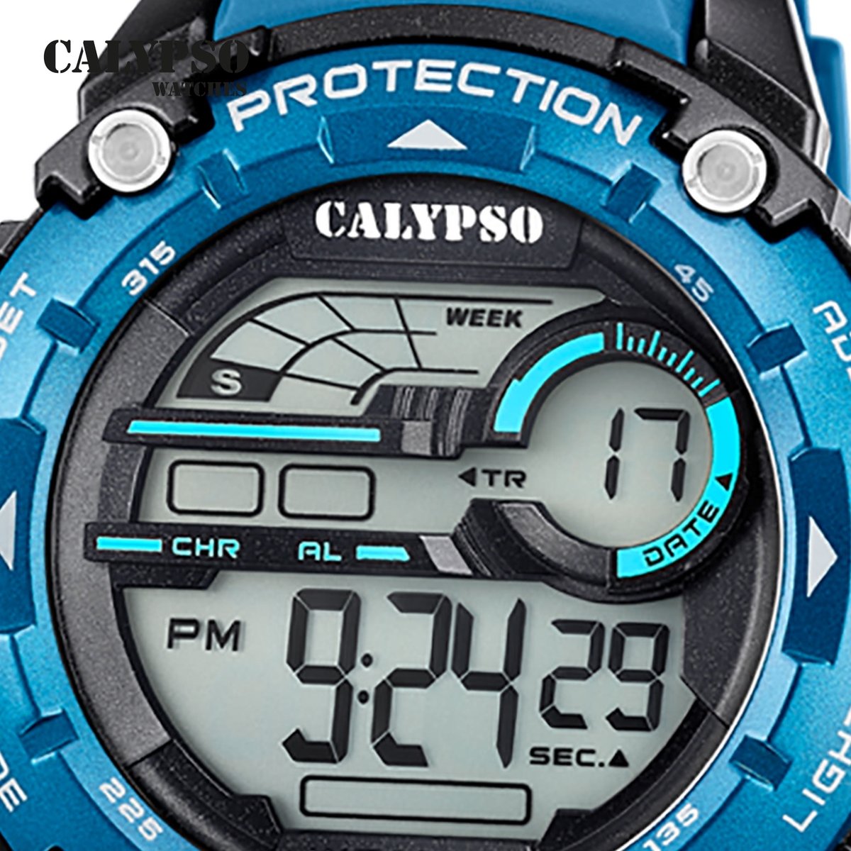 Ten wyjątkowy zegarek męski z aktualnej kolekcji Calypso Digital gwarantuje wysoki komfort noszenia dzięki wysokiej jakości plastikowemu paskowi w kolorze niebieskim . Zegarek na rękę z cyfrowym wyświetlaczem i precyzyjny zegarek na rękę to niezawodny towarzysz w życiu codziennym i czasie wolnym.