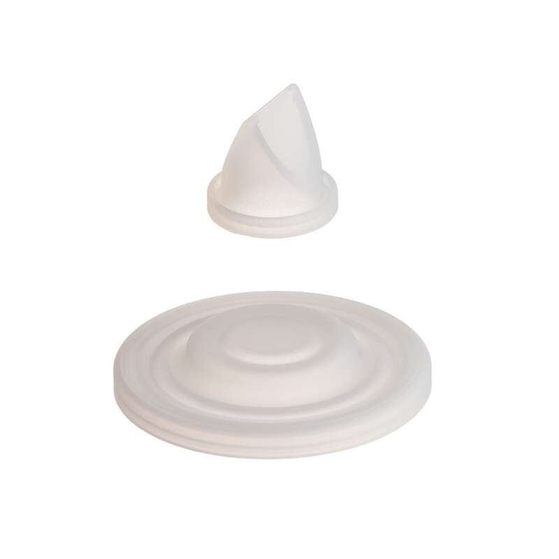 Symbol: 20/101Zestaw części zapasowych do laktatora muszlowego Hands-Free.Zestaw zawiera:silikonową membranę,zaworek antyzwrotny 2 szt.0% BPA - produkt wolny od bisfenolu A.