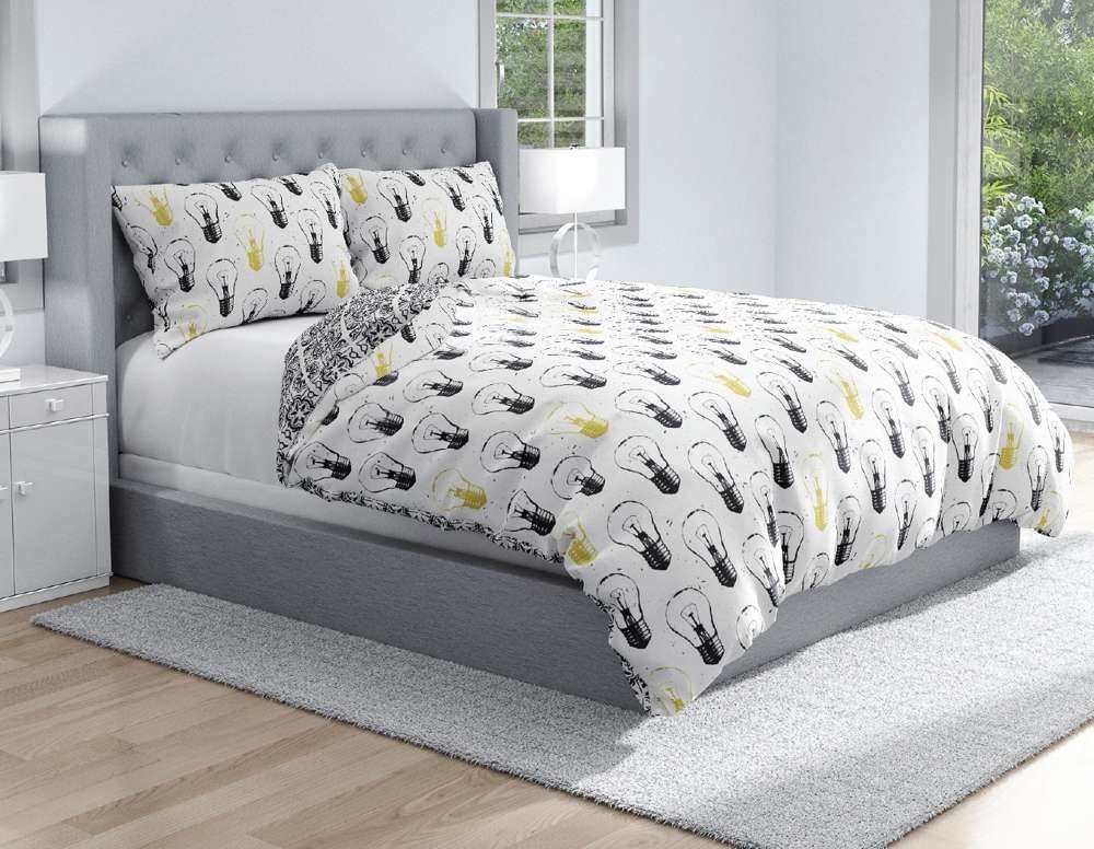 | Nazwa: | Pościel z bawełny, biała z czarnym wzorem żarówek i arabeski, 200x220 cm, 3-elementowa |