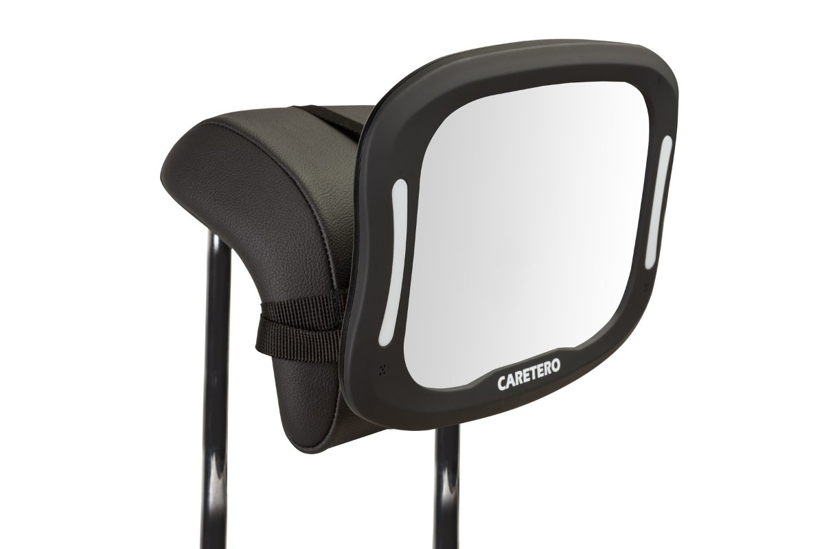 Bezpieczeństwo podczas jazdyPodświetlane lusterko do obserwacji dziecka, dzięki swemu dużemu rozmiarowi, zapewnia szeroki kąt widzenia. Łatwość dostosowania do potrzeb zapewnia mechanizm obrotowy. Dodatkowo, lusterko umożliwia obserwacje także w nocy dzięki podświetleniu LED, którym można sterować dołączonym pilotem. Ponadto lusterko wykonane jest z efektem rybiego oka, dzięki czemu odbija zdecydowanie większy obszar niż standardowe lustro. |