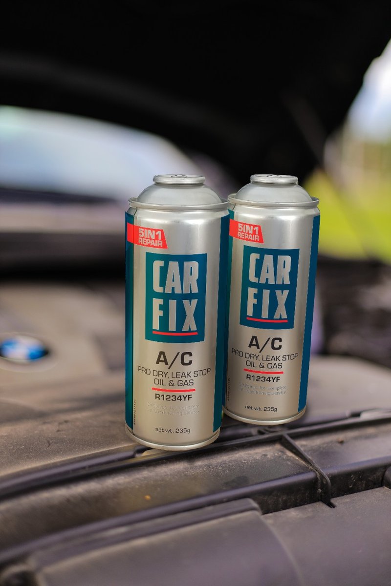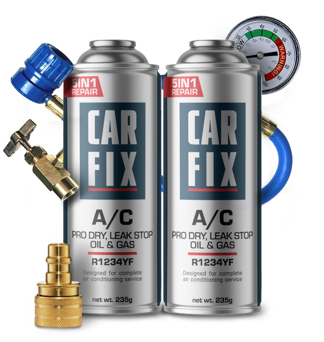 CarFix 5w1 R1234yf – to rewolucyjny preparat o kompleksowym działaniu, przeznaczony do samodzielnego (DIY) przeprowadzenia całościowego serwisu klimatyzacji w niecałe 5 minut, bez konieczności wizyty w specjalistycznym zakładzie, bez użycia specjalistycznych narzędzi serwisowych i bez wytwarzania próżni 23 hPa. Pojemnik o pojemności 400ml współpracuje z przewodem ładującym z manometrem CarFix, pozwalającym doładować zawartość opakowania do układu klimatyzacji 90% pojazdów osobowych, w których układ klimatyzacji jest zasilany czynnikiem R1234yf, czyli aut produkowanych po 2017 roku. Gaz CarFix jest w pełni ekologiczny i nie przyczynia się do efektu cieplarnianego. Miesza się z powodzeniem z gazem R1234yf, natomiast zawarte w nim składniki i 5 substancji: osusza układ chłodzenia A/C ze szkodliwych mikrocząsteczek wody, uszczelnia układ (zarówno elementy gumowe tzn: o ringi, jak i elementy aluminiowe), smaruje kompresor klimatyzacji oraz uzupełnia czynnik do wymaganej wartości.