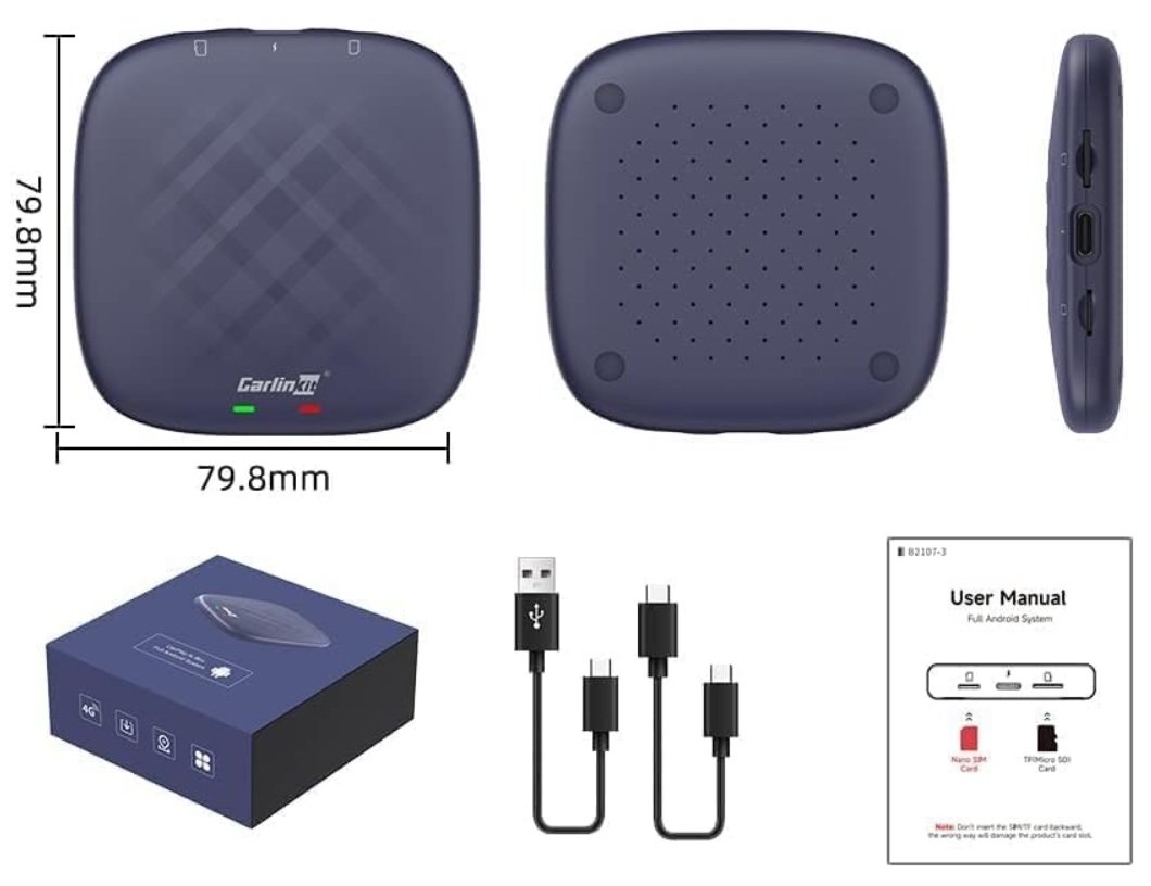 Carlinkit Tbox Plus Android 13.0 - 8G/128G Bezprzewodowy Apple Carplay Android Auto / Karta SIM SD Carlinkit Tbox Plus 8gb/128gbto zaawansowany adapter bezprzewodowy, który pozwoli Ci na pełne korzystanie z funkcji Apple CarPlay w Twoim samochodzie bez konieczności podłączania telefonu za pomocą kabla Pozwala na bezprzewodowe połączenie telefonu z Android Auto lub Apple CarPlay w Twoim pojeździe Zawiera slot na kartę SIM, co umożliwia pobieranie aplikacji z App Store lub Google Play 8GB RAM gwarantuje płynne i sprawnie działanie aplikacji, eliminując opóźnienia i zawieszenia systemu. Możliwość pobierania i korzystania z różnych aplikacji ze sklepu Google Play, dzięki wbudowanemu systemowi Android 13.0. Bezprzewodowy CarPlay i Android Auto zapewniające bezproblemową łączność z większością smartfonów Karta SIM pozwala urządzeniu na samodzielne połączenie z internetem, eliminując potrzebę korzystania z połączenia Wi-Fi czy tetheringu z innego urządzenia. Możliwość przekształcenia przewodowego Apple CarPlay Android Auto na bezprzewodowy, z automatycznym połączeniem po pierwszym ustawieniu. Wyposażony w 8 GB pamięci RAM i 128 GB pamięci ROM, zapewniając płynną i responsywną obsługę. Adapter Carlinkit Tbox Pluspreinstalowane aplikacje, takie jak YouTube, Netflix czy Disney+ 8-rdzeniowy procesor Qualcomm dla wyjątkowej wydajności i szybkości. Akceptuje kartę TF o pojemności do 128 GB, co pozwala na dodatkowe rozszerzenie pamięci.