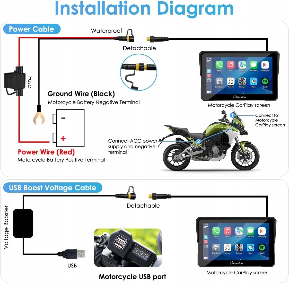 Informacje o tym produkcie【Bezprzewodowy CarPlay i Android Auto dla motocykli】: Nasz Carpuride W702 Pro Carplay jest kompatybilny z funkcjami Apple CarPlay lub Android Auto. Dzięki bezprzewodowemu ...