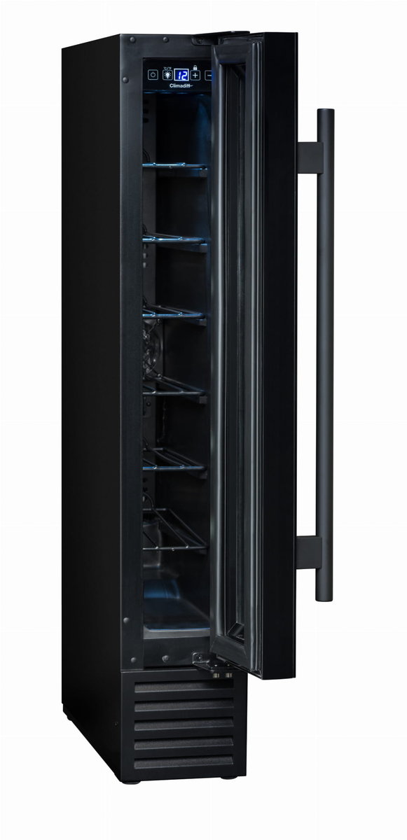 CBU7S1B chłodziarka do wina do zabudowy meblowej pod blatem. Jednostrefowa o pojemności do 7 butelek wina.