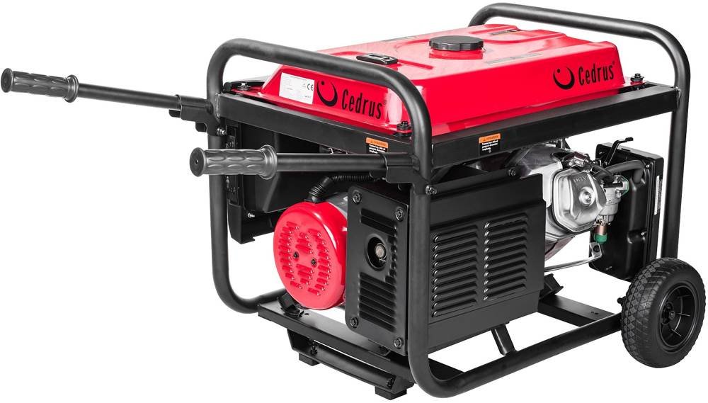 Agregaty Cedrus to nowość w naszej ofercie. Zastosowaliśmy w nich niezawodne i sprawdzone silniki Rato w tym modelu o mocy 12 KM i pojemności 420 cm3, moc nominalna 5500W, moc rozruchowa 6000W Agregat o łącznej wadze 90 kg. Specjalnie zaprojektowana prądnica z miedzianym uzwojeniem gwarantuje niezawodność działania. Agregat Cedrus AG6E-1F z zestawem transportowym. System AVR zapewnia stabilizację napięcia, aby zabezpieczyć zasilane odbiorniki przed wahaniami napięcia. Czujnik oleju wyłączy agregat przy niskim poziomie oleju zabezpieczając silnik przed zatarciem. Dodatkowo nasze agregaty wyposażone są w bezpieczniki obwodów. Agregat prądotwórczy AG6-1F sprawdzi się niezawodnie w przypadku nagłej przerwy w dostawie prądu. Będzie także niezastąpiony w miejscach gdzie nie ma żadnej możliwości przyłączenia się do prądu. Można go wykorzystać podczas remontu i na budowie. Nadaje się również do zasilania niewielkiego domku czy działki, do zasilania oświetlenia czy do utrzymania pracy niezbędnych urządzeń podczas przerwy w dostawie zasilania.