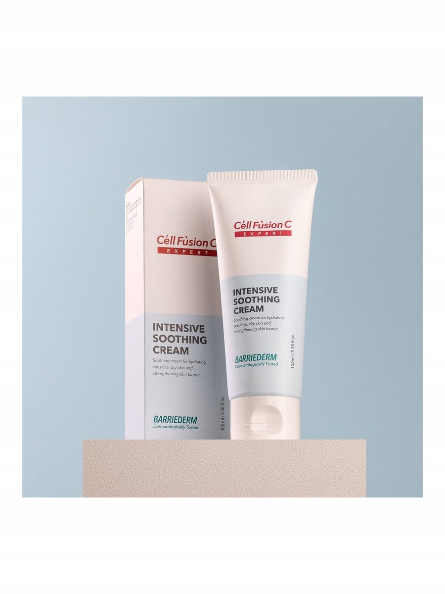 Cell Fusion C Expert Intensive Soothing Cream to ultralekki krem opracowany z myślą o skórze wrażliwej, reaktywnej, suchej, mieszanej i trądzikowej. Zapewnia natychmiastowe uczucie ulgi, chłodzenia i intensywnego nawilżenia, nie powodując efektu obciążenia. Idealny dla dorosłych, dzieci, a także dla mężczyzn – do stosowania codziennie i po zabiegach estetycznych.