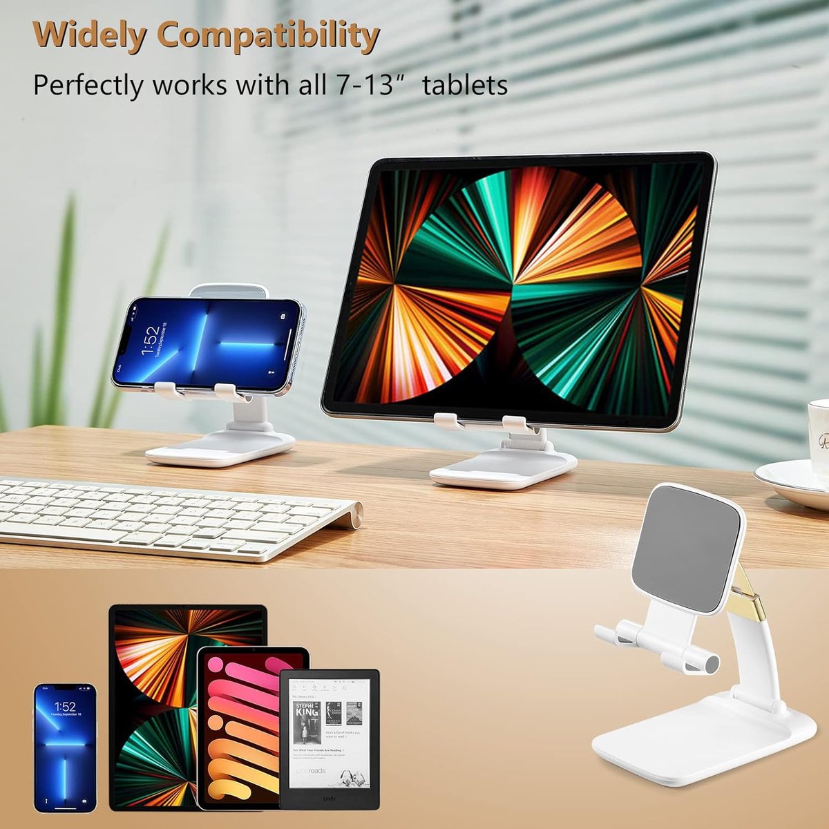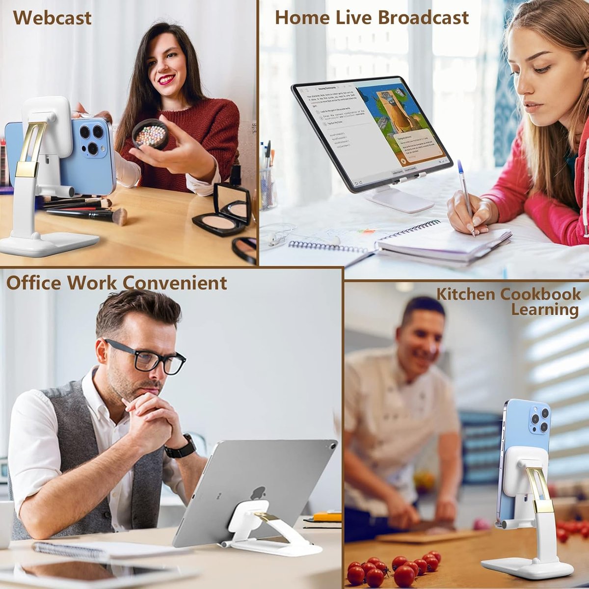 Wide Compatibility: Desktop Universal Phone Holder is suitable for mobile phones and smart devices between 4-12.9 inches, such as iPhone 13 Pro max, Mini, iPad, iPad Pro, iPad mini, Huawei, Galaxy s21, Xiaomi, LG, Sony, Nexus, even these phones with cases.