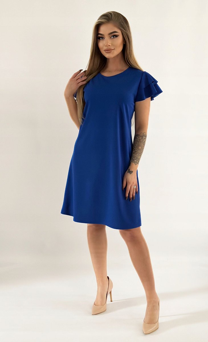Ta sukienka to wyjątkowa kreacja, która zachwyca swoim urokiem i elegancją. Jej długość przed kolano sprawia, że jest odpowiednia na różne okazje, zarówno formalne, jak i nieformalne. Idealnie nada się na codzień, do pracy, spotkania biznesowe czy każdego rodzaju imprezy np. komunie, chrzciny itp.
