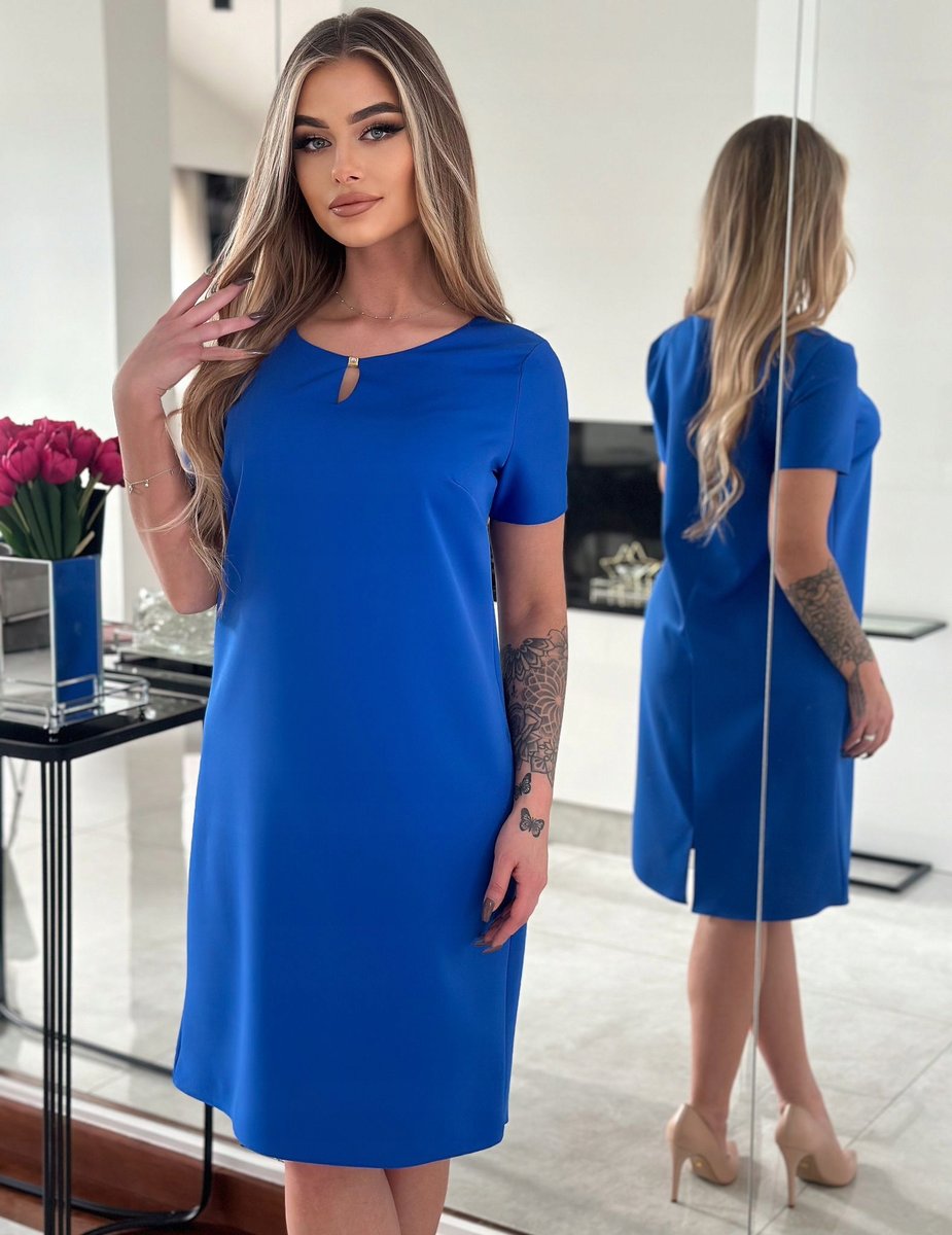 Klasyczna prosta a zarazem elegancka sukienka z biżuteryjną ozdobą przy dekolcie będzie idealnym wyborem na różne okazje, przyjęcia, komunie, chrzciny czy wesela. Idealnie sprawdzi się również na przyjęcia biznesowe czy spotkania ze znajomymi.