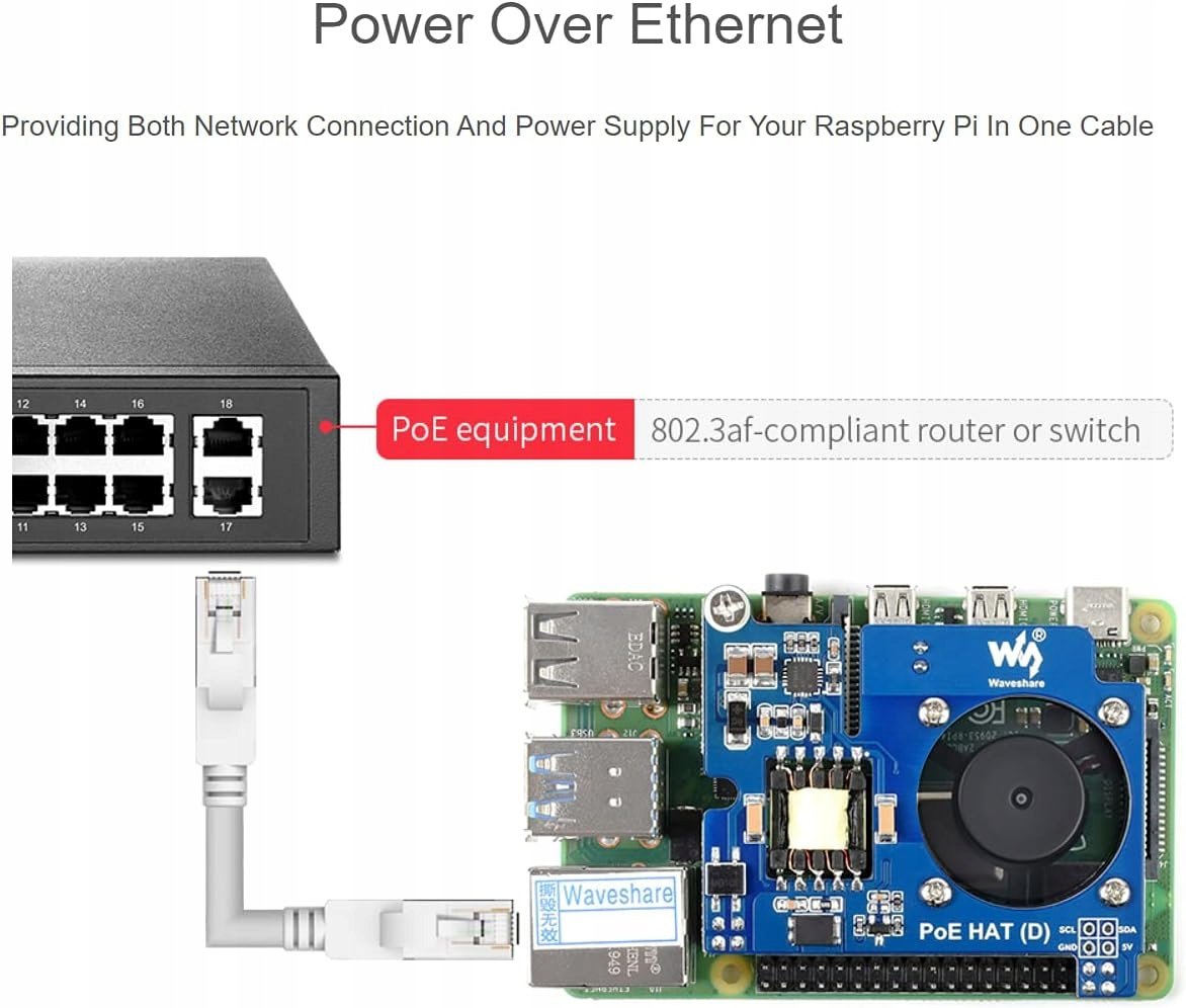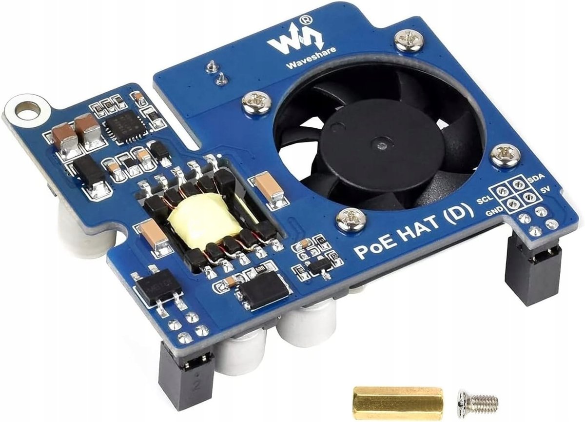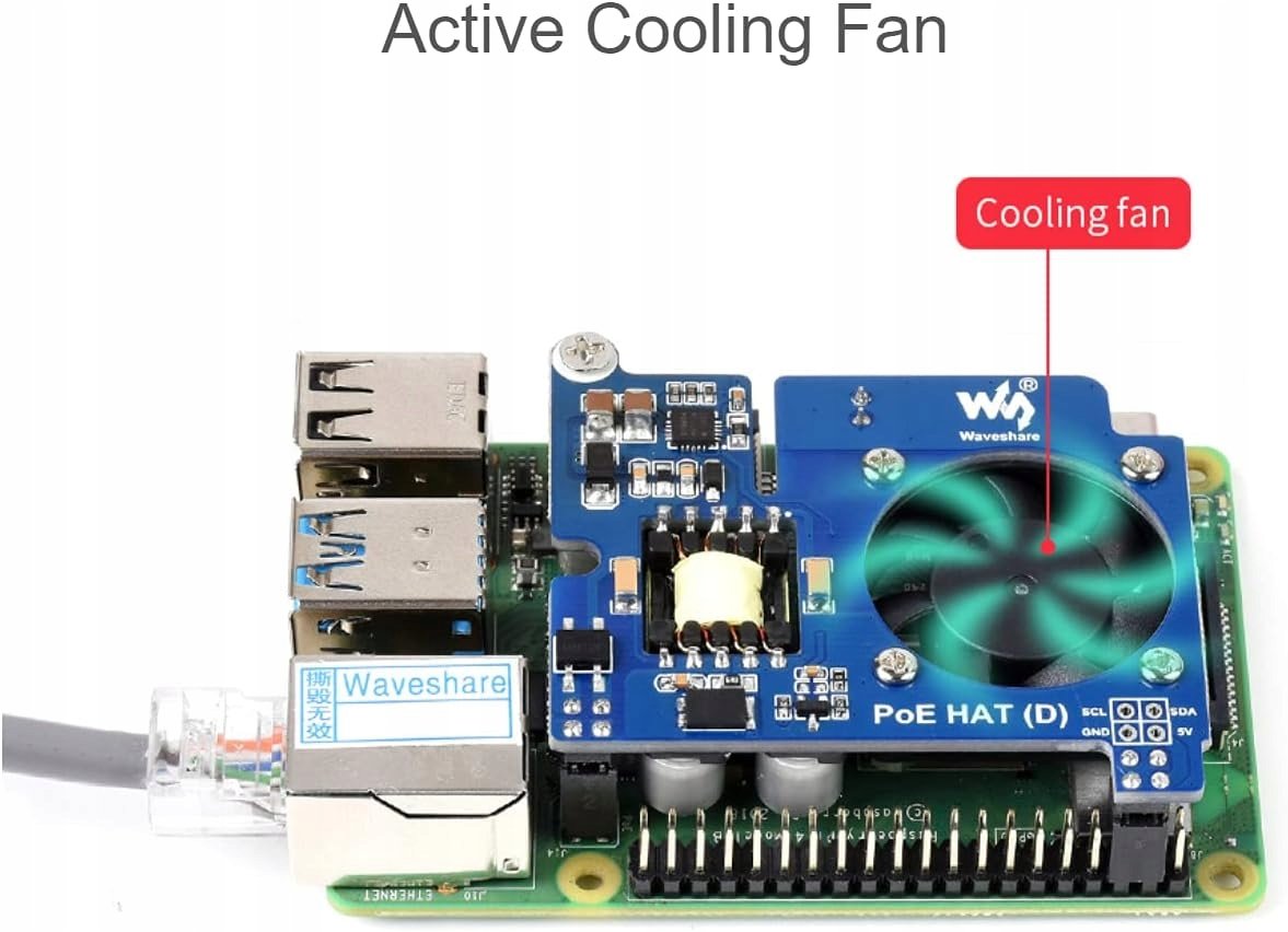 ⭐ Moduł PoE HAT (D) od IBest to kompaktowa płytka rozszerzeń zgodna ze standardem 802.3af/at, która pozwala zasilać Raspberry Pi 3B+/4B bezpośrednio przez kabel sieciowy Ethernet.