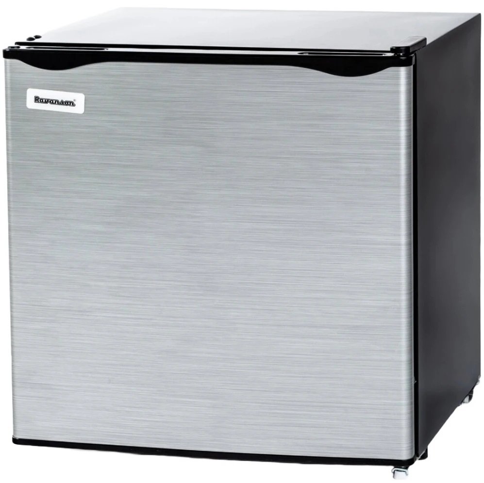 Chłodziarka z zamrażalnikiem Ravanson LKK-50ES 41L Regulacja nóżek Inox Chłodziarka z możliwością przełożenia kierunku otwierania drzwi, front w kolorze srebrnym, a boki w kolorze czarny ...