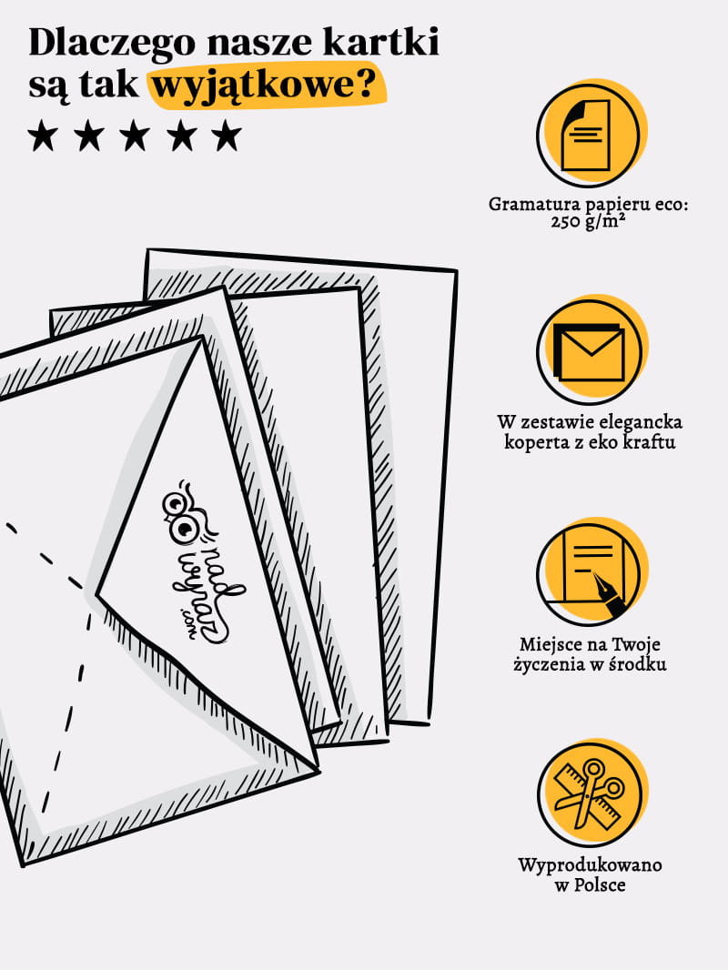 Kartka świąteczna CHOINKA w zestawie z kopertą jest pusta w środku. Została wydrukowana od A do Ż w Polsce na papierze ekologicznym. Jej wnętrze czeka na wypełnienie treścią płynącą prosto z Twojego serca. W sam raz na prezent bożonarodzeniowy dla babci!