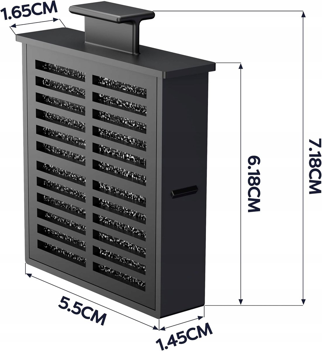 - Materiał: Plastikowe pudełko z węglem aktywnym