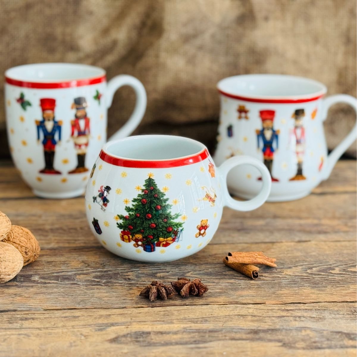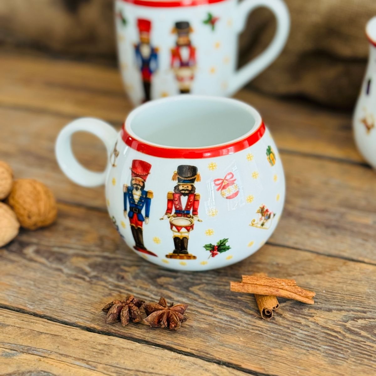 CICHA NOC kubek do czekolady SL46 red Kubek na czekoladę z motywem bajkowych dziadków do orzechów to idealny towarzysz zimowych wieczorów. Jego świąteczne zdobienia i klasyczna forma sprawiają, że każdy łyk gorącego napoju staje się wyjątkowym rytuałem. To nie tylko praktyczne naczynie, ale także uroczy akcent, który wprowadza do domu ciepło i magię Bożego Narodzenia.