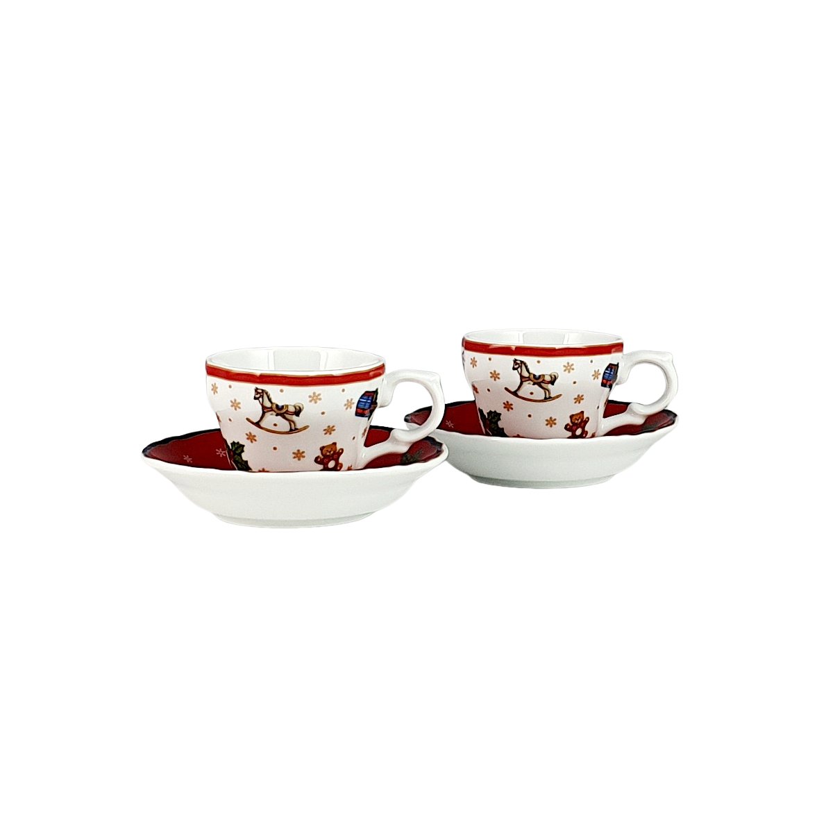Zestaw porcelanowych filiżanek do espresso z kolekcji Cicha Noc to małe dzieła sztuki, które łączą w sobie elegancję i świąteczny urok. Urocze zdobienia z zimowymi detalami nadają każdemu espresso wyjątkowego charakteru i podkreślają magiczną atmosferę Bożego Narodzenia. To idealny komplet dla miłośników aromatycznej kawy oraz piękny prezent, który umili zimowe poranki.