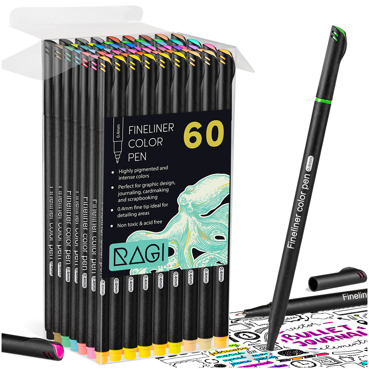 Ragi Cienkopisy Kolorowe Kreślarskie do Rysowania Szkicowania Zestaw cienkopisów 60 sztuk Cienkopisy to narzędzie odpowiednie zarówno dla profesjonalistów, jak i hobbystów. Posiadają okrągłą, ...