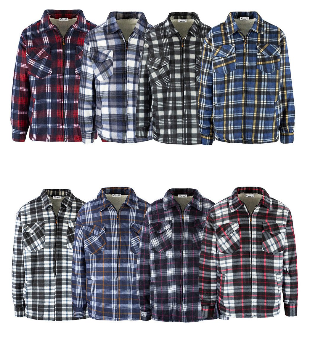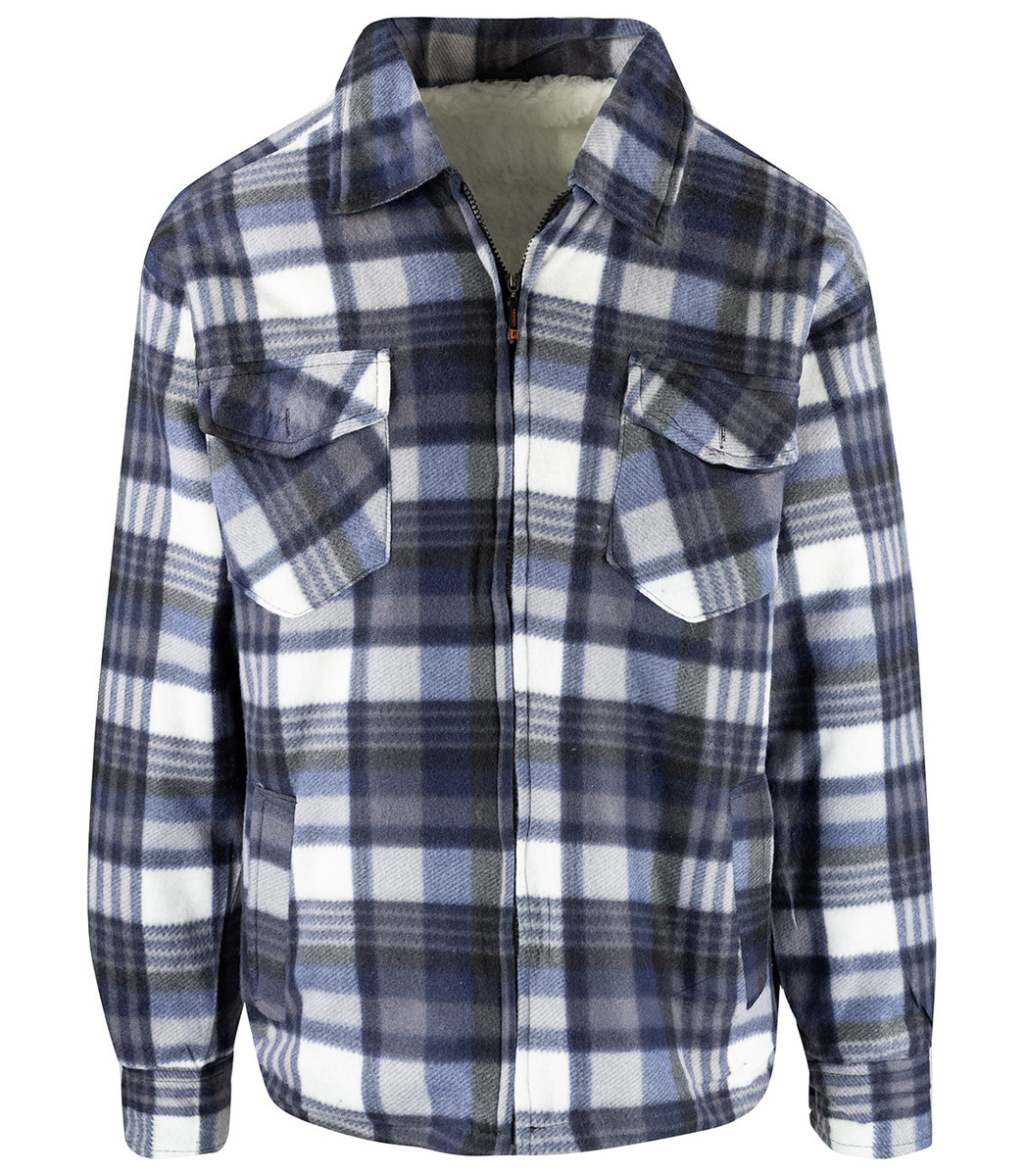 koszula w kratę krój regularny zapinana na suwak posiada 2 kieszenie z przodu ciepła, polarowa ocieplana białym futerkiem Męska koszula w kratęKołnierzyk hidden button-downCiepła polarowa koszula ...