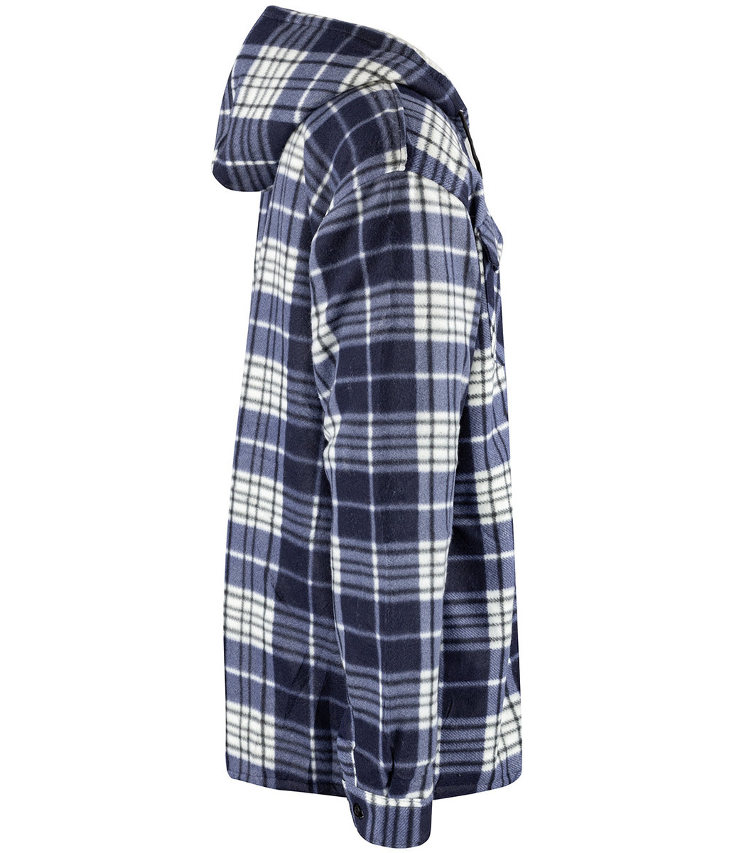 koszula w kratę krój regularny zapinana na suwak posiada 2 kieszenie z przodu ciepła, polarowa ocieplana białym futerkiem z kapturem Męska koszula w kratę z kapturemKołnierzyk hidden ...