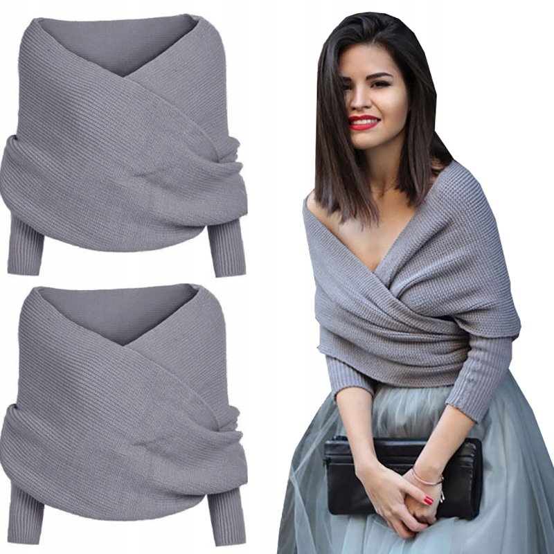 Ciepłe Ponczo Gruby Sweter Damski Szal Z Rękawami Narzutka Bolerko Otulacz