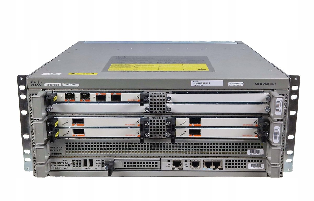 | Nazwa: | Cisco Asr1004 Asr1004-40g-Nb 2 X Asr1000-Sip40 4 X Spa-1x10ge-L Asr1000-Esp |