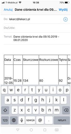 Twój opis zostanie trwale przyporządkowany konkretnemu zapisowi pomiaru. Historię swoich zapisów, wraz z wprowadzonymi przez Ciebie uwagami i parametrami, możesz w każdej chwili przesłać na wybrany adres e-mail, np. Twojego lekarza, czy członków Twojej rodziny.