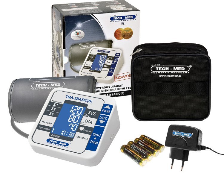 TECH-MED TMA-3 BASIC (B) to nowoczesny ciśnieniomierz elektroniczny, w którym zastosowano oscylometryczną metodę pomiaru z zastosowaniem technologii MWI (Measuring While Inflating). Ciśnieniomierz charakteryzuje się wysoką dokładnością pomiaru – równorzędną dokładności pomiarów dokonywanych metodą osłuchową za pomocą sphygmomanometrów mechanicznych przez wykwalifikowany personel medyczny. Dokładność ta została potwierdzona badaniami klinicznymi. Wykonanie dokładnego pomiaru ciśnienia jest niezwykle proste – wymaga przyciśnięcia tylko jednego przycisku. Ergonomiczny wyświetlacz LCD zapewnia łatwy odczyt wyniku pomiaru