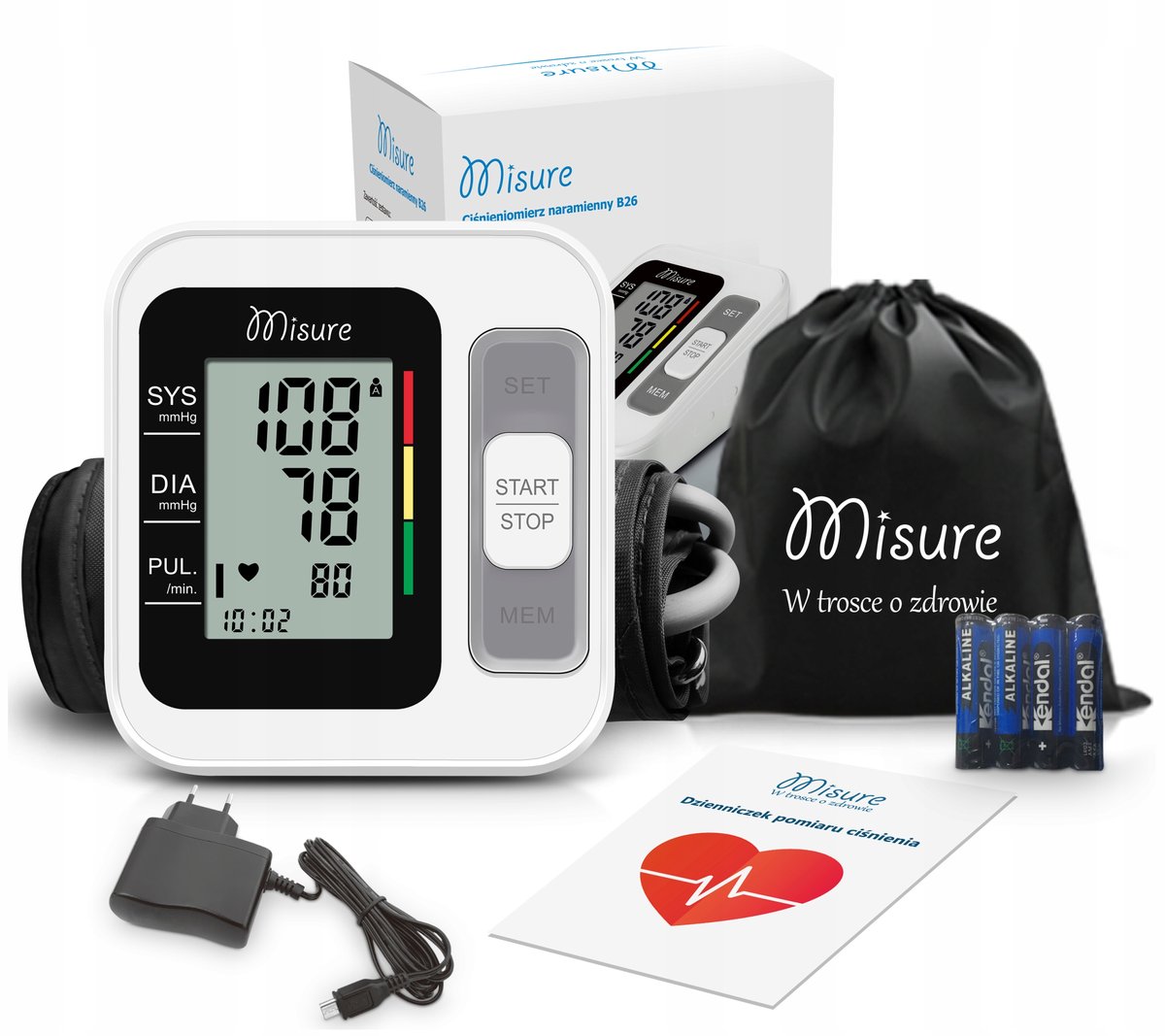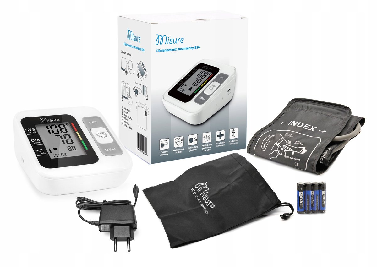 ✔️Kompletny zestaw – w zestawie mankiet, zasilacz, baterie i pokrowiec.
