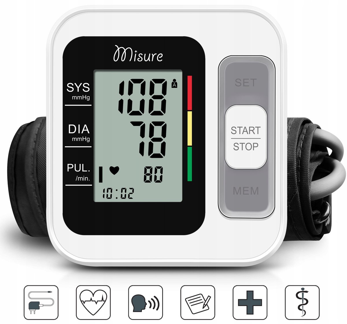 Ciśnieniomierz naramienny Misure B26, Automatyczny, Mówi po POLSKU ✅ Automatyczny pomiar – wykorzystuje technikę oscylometryczną do precyzyjnego pomiaru skurczowego i rozkurczowego ciśnienia krwi