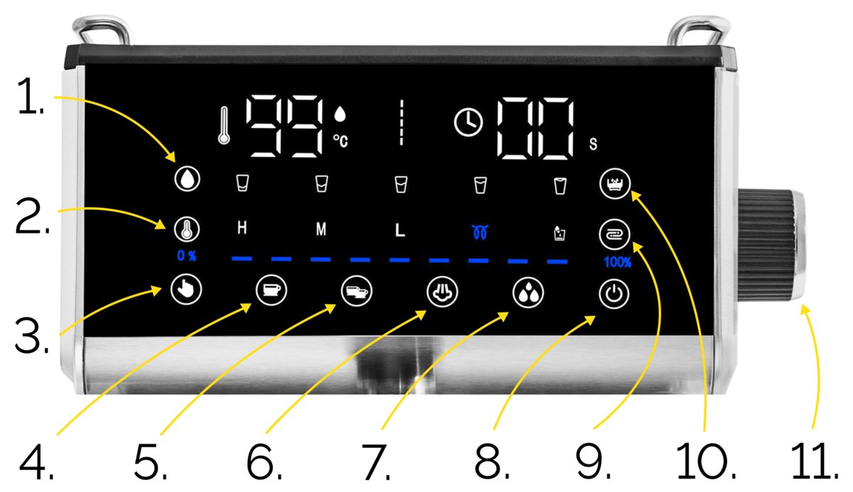 ▶ Cyfrowy wyświetlacz LED z dotykowym panelem - umożliwia łatwą kontrolę nad procesem parzenia kawy
