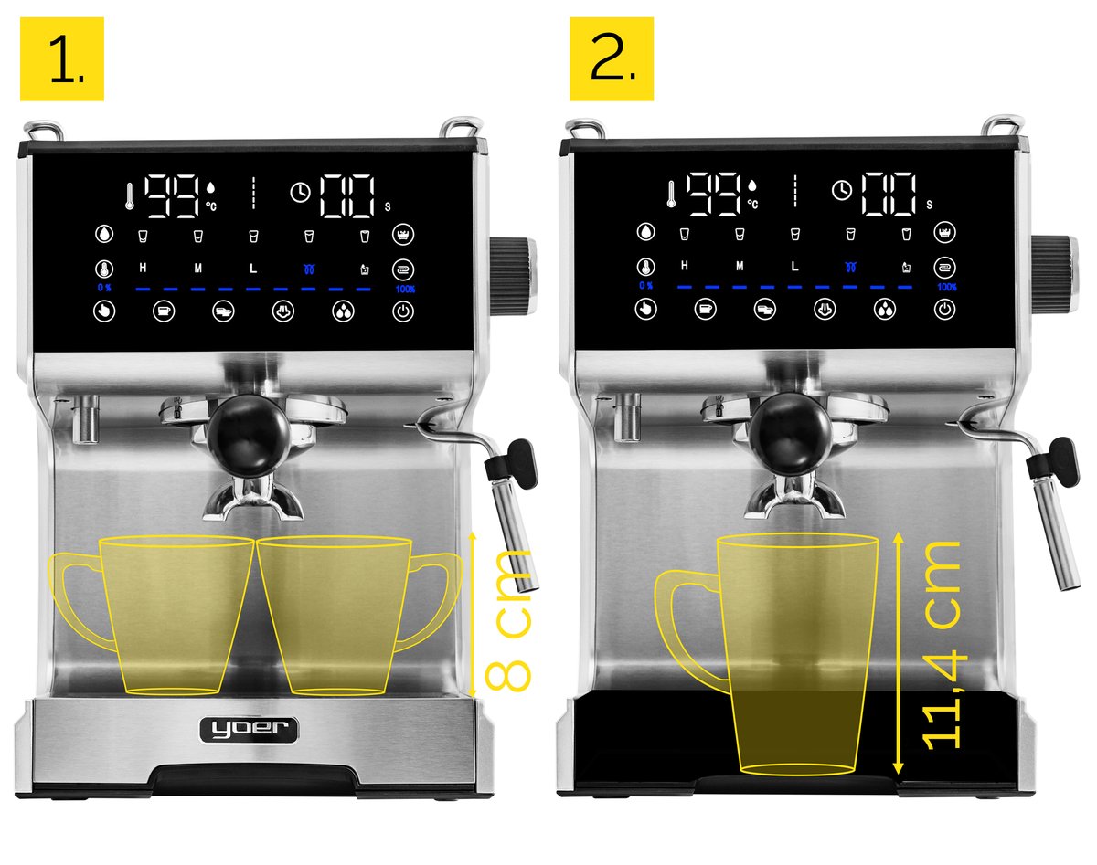 2️⃣ Max. wysokość 11,4 cm - kubek ustawiony na podstawie bez tacki i kratki ociekowej