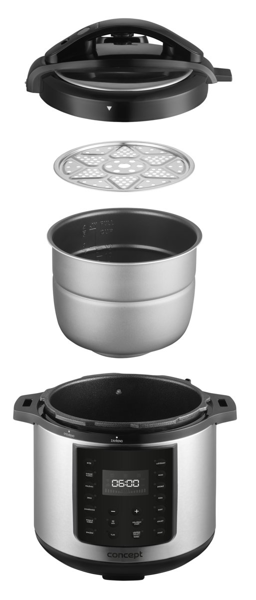 Wielofunkcyjny szybkowar Concept CK8001 z łącznością WiFi to nowoczesny sposób gotowania. Dzięki pojemności 5,6 litra możesz wygodnie przygotować jedzenie nawet dla 6 osób. Pełni funkcję szybkowaru, parowaru, wolnowaru, urządzenia do gotowania sous-vide, urządzenia do gotowania ryżu, zup i jogurtu. Dzięki CK8001 można szybko i łatwo przygotować niemal wszystko, co przyjdzie do głowy - od zupy po słodki deser.