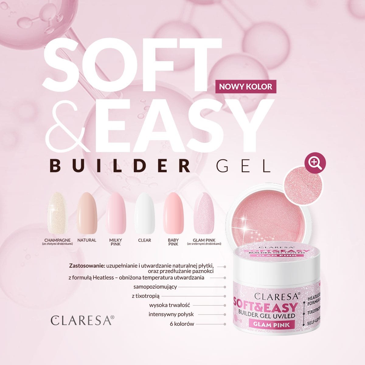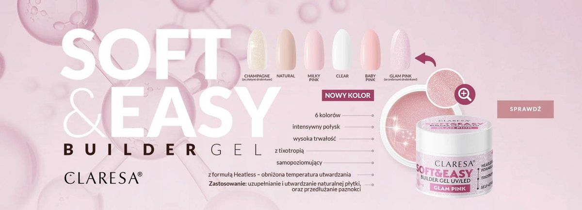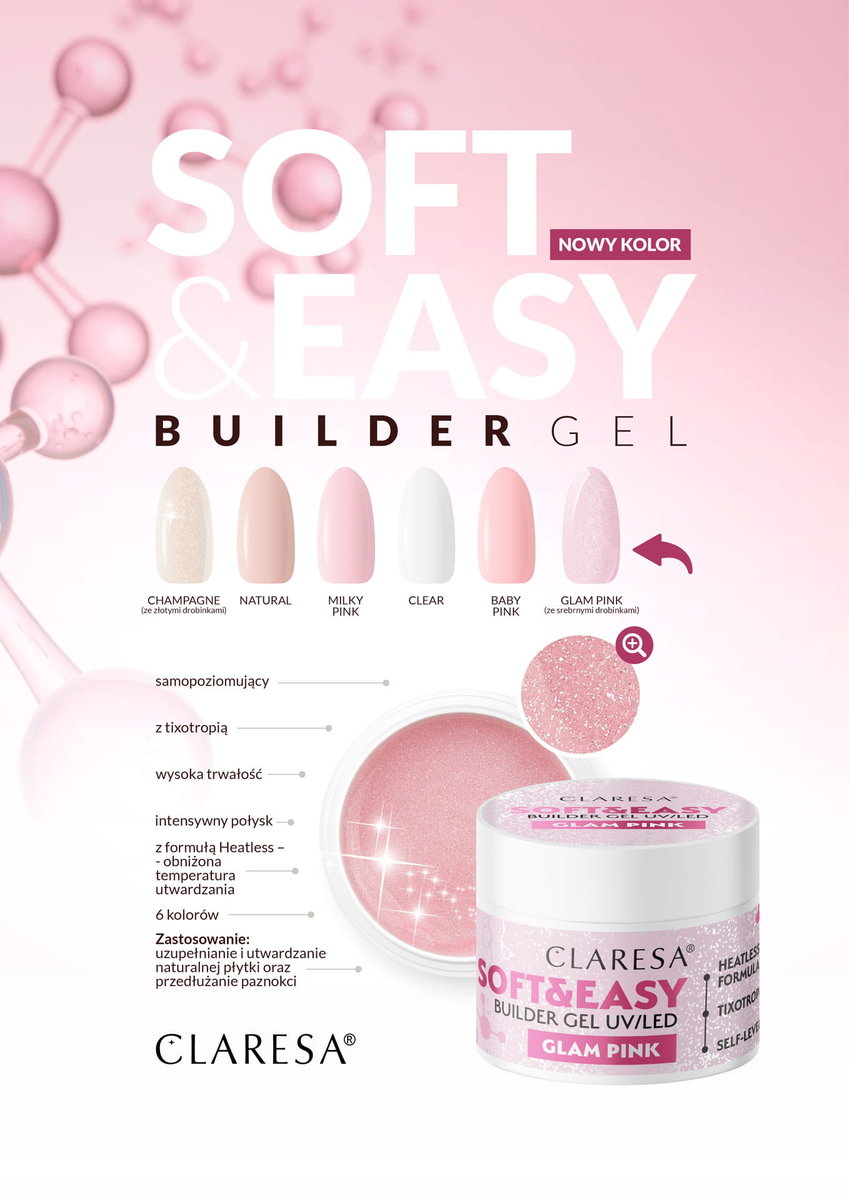CLARESA ŻEL BUDUJĄCY DO PAZNOKCI SOFT&EASY GLAM PINK 45 G