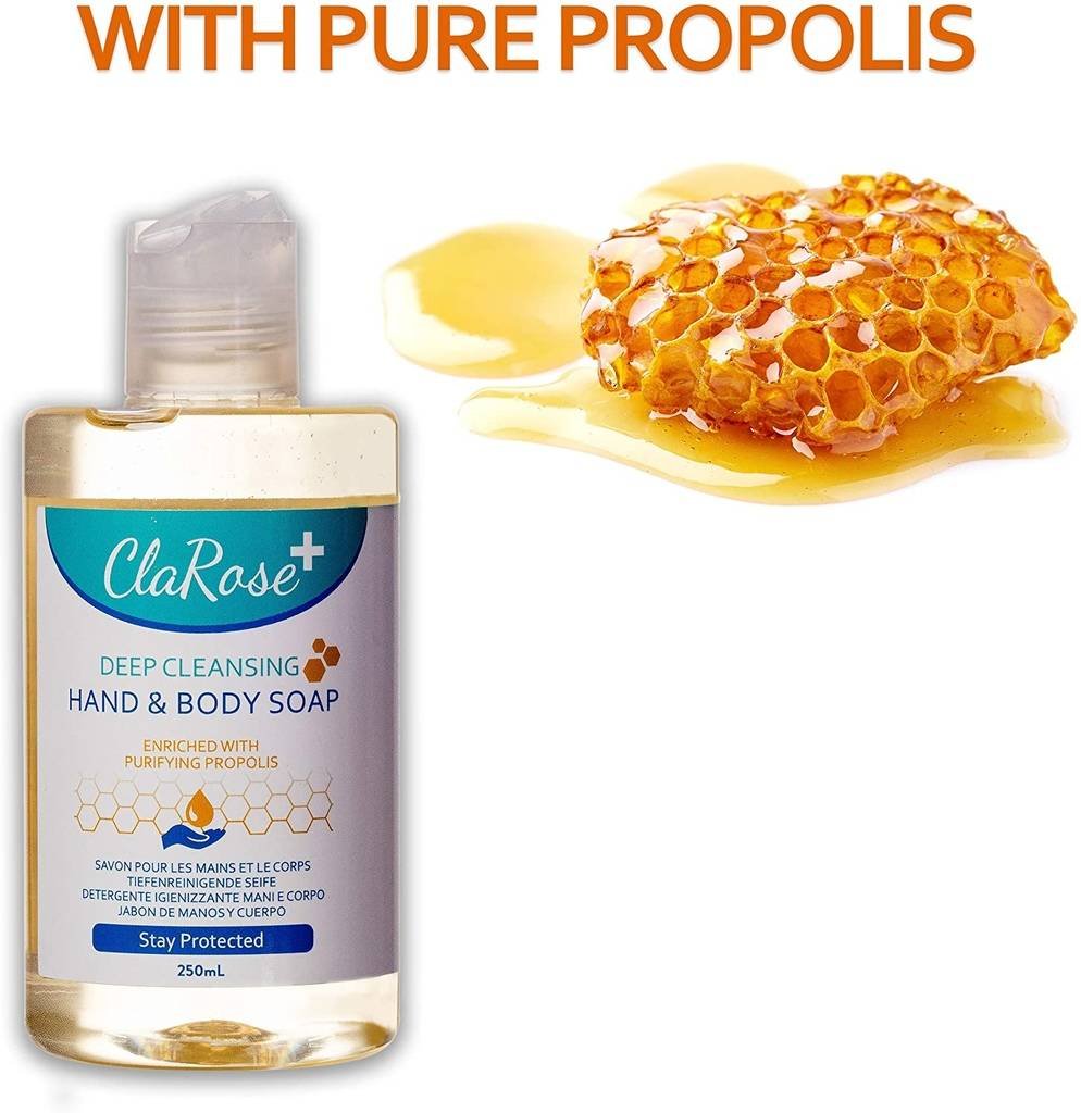 Mydło w płynie ClaRose z propolisem 250 mlGłęboko oczyszczający żel do mycia rąk i ciała. Zapach świeżości po umyciu sprawi, że każda kąpiel stanie się przyjemnością. Posiada antybakteryjne ...