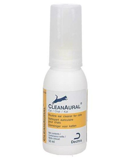CleanAural Cat – płyn dla kotów przeznaczony do rutynowego oczyszczania i usuwania z uszu woskowiny, złogów i zanieczyszczeń. Preparat może być stosowany w trakcie leczenia – wraz z miejscowymi antybiotykami.