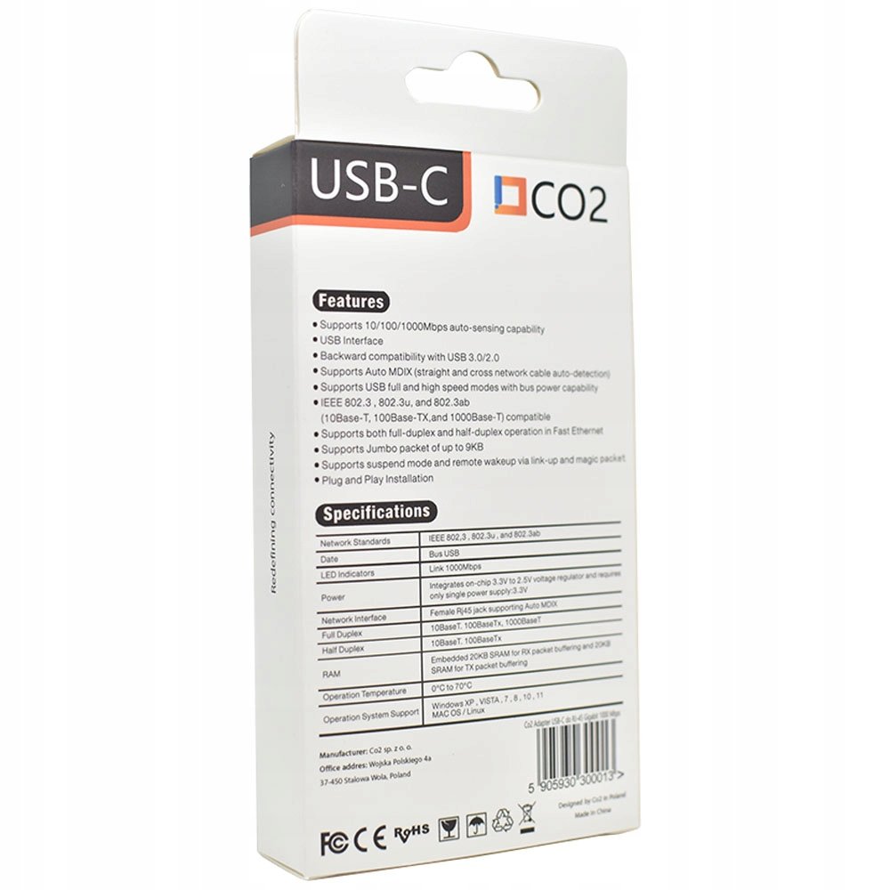 | Nazwa: | CO2 PRZEJŚCIÓWKA USB-C ETHERNET ADAPTER KARTA SIECIOWA LAN GIGABIT RJ45 1000MBPS |