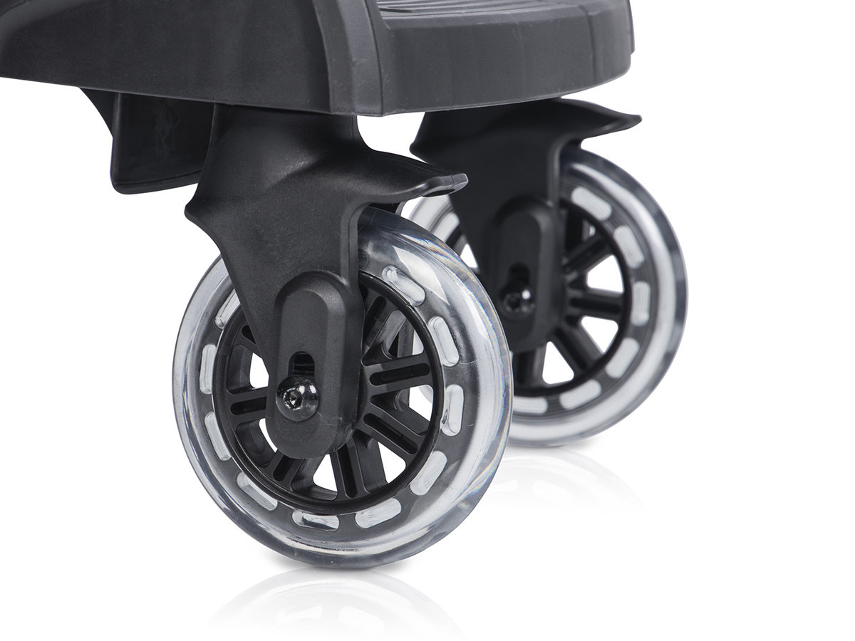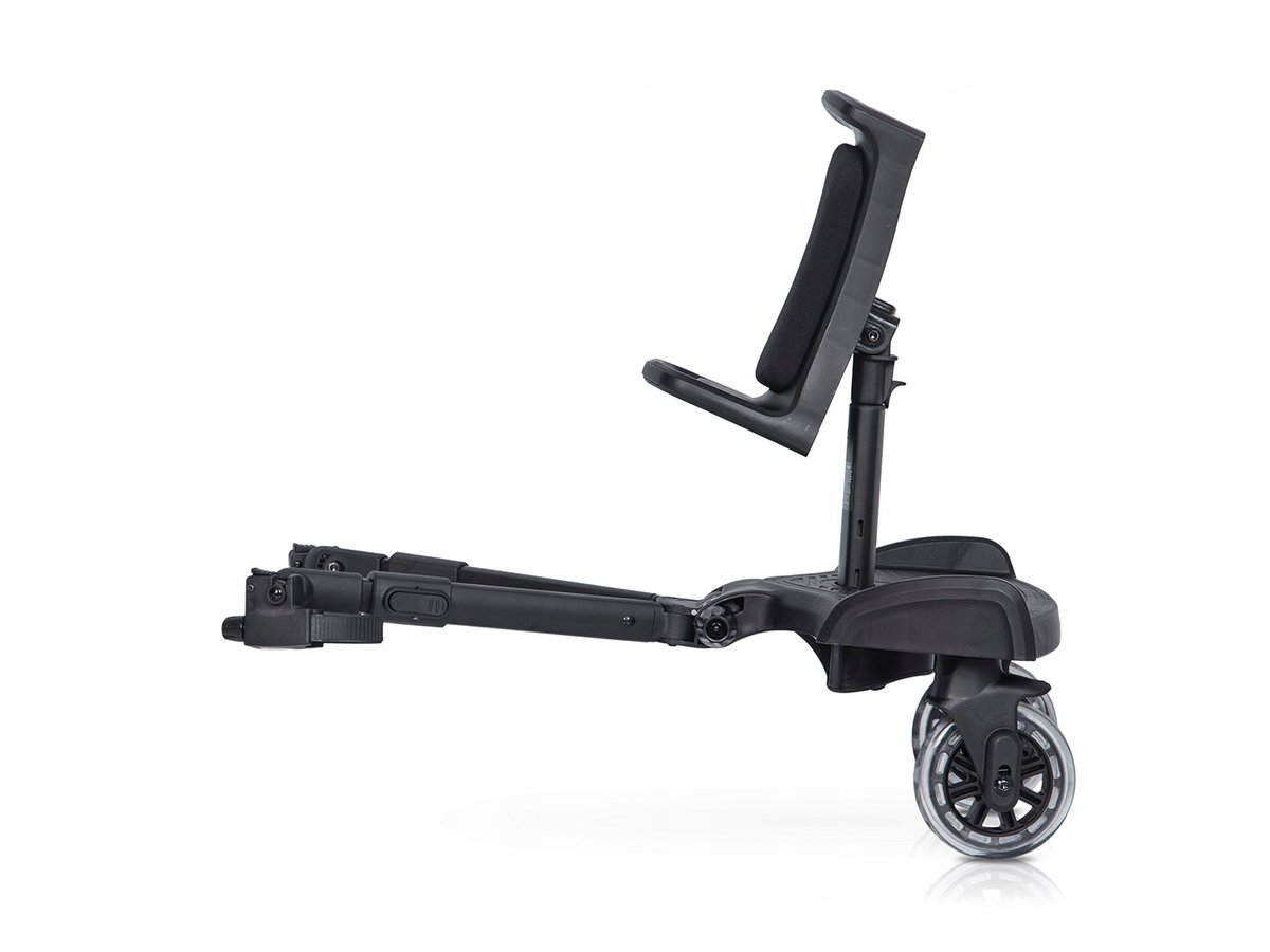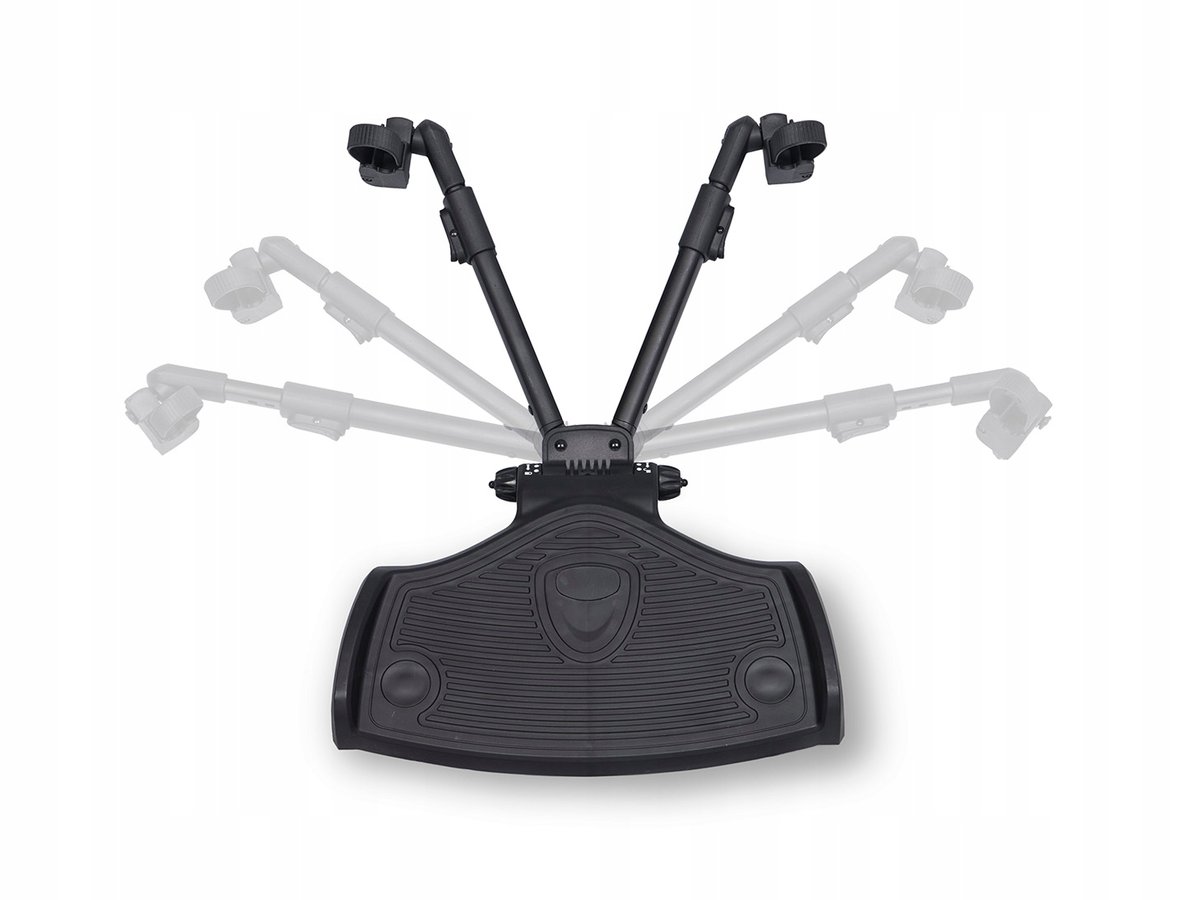 Platforma dostawki wykonana została z solidnego matowego tworzywa, a jej górna powierzchnia posiada antypoślizgowe użebrowania. Jest to ważna cecha, gdy przewozisz dziecko w pozycji stojącej.
