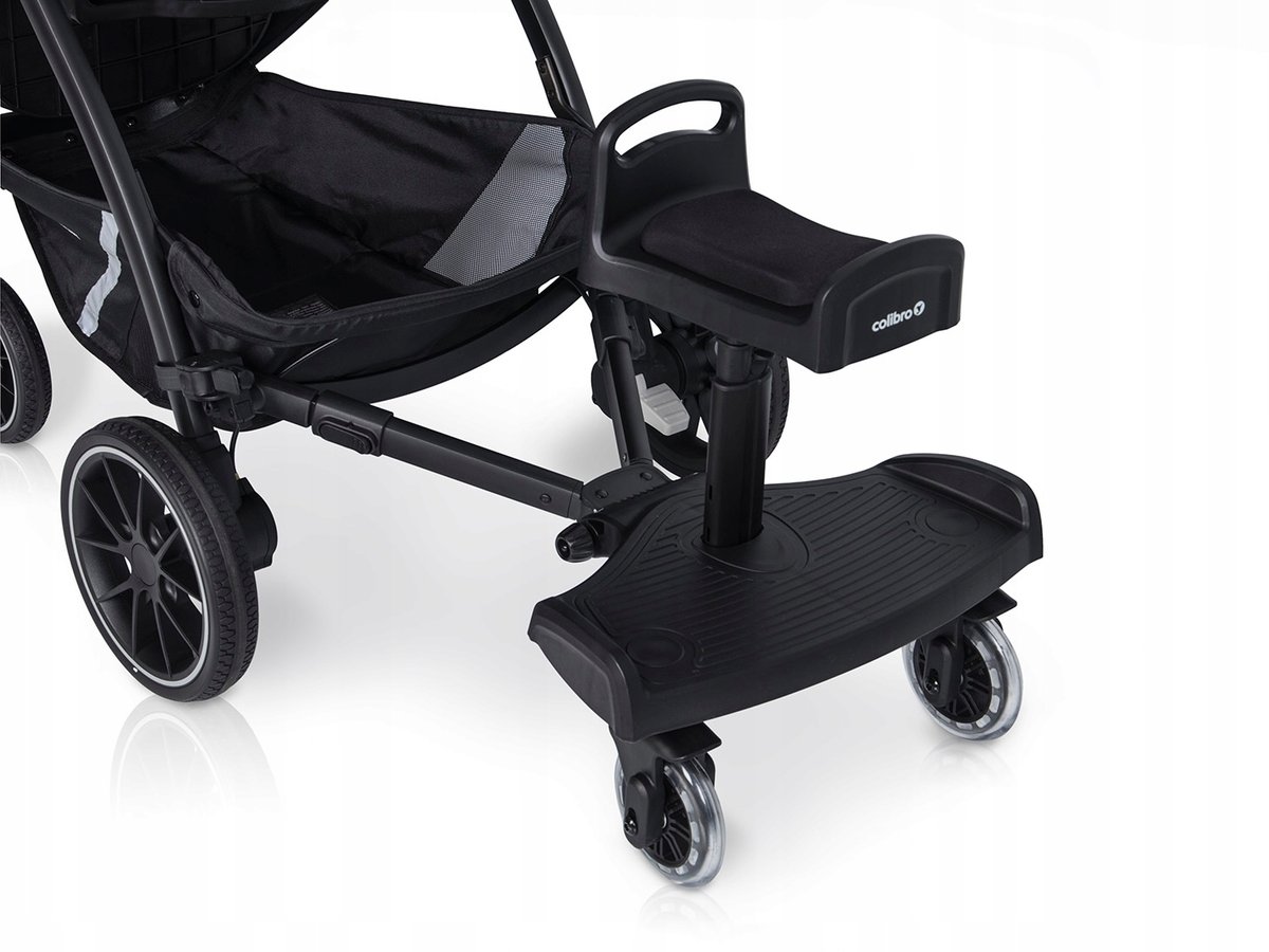 Dostawka uniwersalna 2w1 do wózka dziecięcego to nowość w ofercie marki Colibro. Stanowi idealne uzupełnienie dla Twojego wózka. Dzięki niej komfortowo przetransportujesz swoje starsze dziecko, które nie korzysta już z wózka dziecięcego. Dostawka Colibro może być stosowana jako sama platforma dla stojącego dziecka lub jako platforma z siedziskiem, która pozwala przetransportować dziecko w pozycji siedzącej. Siedzisko posiada wygodną funkcję odchylenia do przodu, dzięki której nie trzeba go całkowicie demontować jeśli Twoje dziecko zechce wstać i kontynuować jazdę na stojąco. Siedzisko posiada wygodną miękką nakładkę wypełnioną specjalną pianką zapewniającą komfort siedzącemu dziecku.