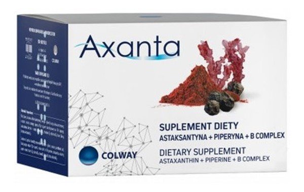 | Nazwa: | Colway, Axanta, Astaksantyna + piperyna + B complex, Suplement diety, 60 kaps. |