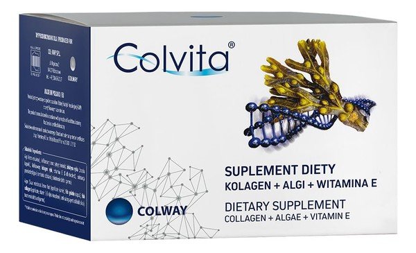 Ten suplement diety powstał, aby zapewnić lepszy wygląd skóry i maksymalnie poprawić jej gęstość. Zawarty w produkcie liofilizowany kolagen rybi, włączony naturalne procesy metaboliczne, wspomaga odtwarzanie kolagenu ciała ludzkiego. Białko to stanowi aż 30% całkowitej masy protein w ciele człowieka i pełni wiele ról. Jest bowiem niezbędnym elementem utrzymania ciągłej odnowy komórek ciała i dobrej kondycji przestrzeni poza nimi (tzw. macierzy międzykomórkowej). To także składnik zapewniający m.in. jędrność i gęstość skóry oraz wspomagający jej właściwe napięcie i nawilżenie. Dodatek alg i najsilniejszego witaminowego wymiatacza wolnych rodników, czyli witaminy E, znakomicie wzmacnia biopotencjał Colvity o właściwości antyoksydacyjne.