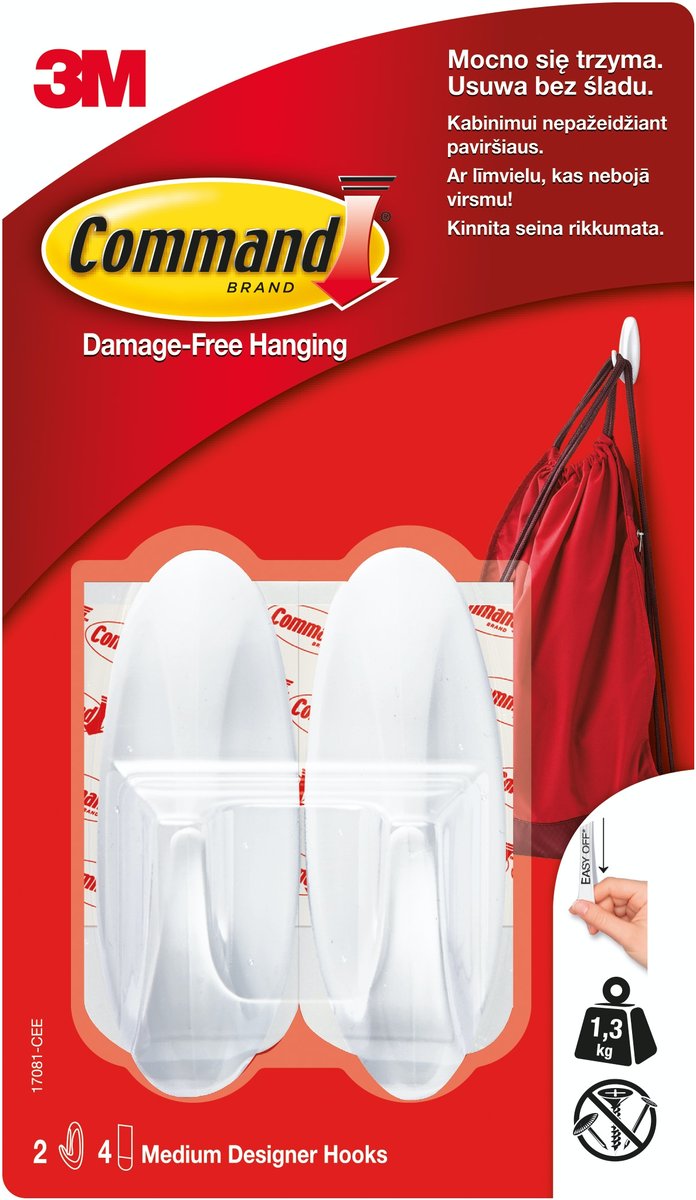 haki średnie w zestawie: 2 haki średnie, 4 paski mocujące do zastosowań wewnątrz (na zewnątrz zastosuj serie OUTDOOR) mocowanie bez uszkodzeń, doskonała przyczepność i usuwanie bez ...