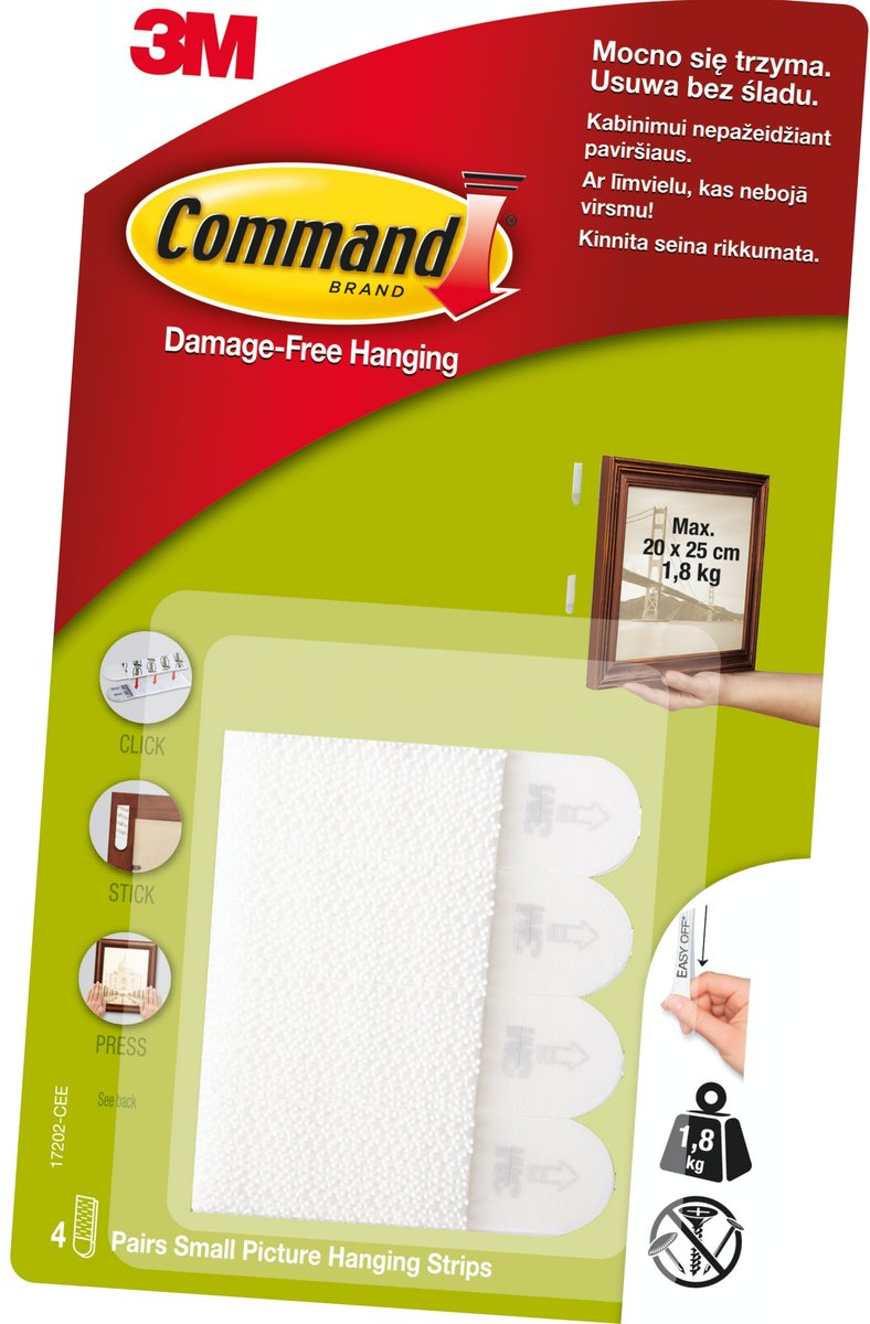 rzepy małe S w zestawie: 8 rzepów do zastosowań wewnątrz (na zewnątrz zastosuj serie OUTDOOR) kolor: biały rozmiar: 16x54 mm maksymalny rozmiar obrazu: 20x25 cm ...