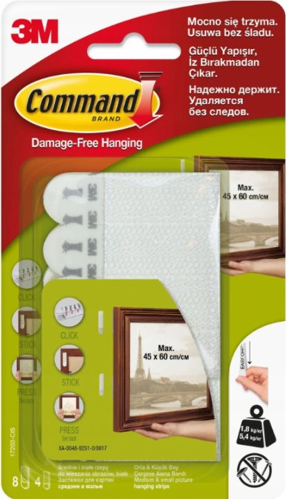 Zestaw rzepów Command 3M do wieszania obrazów, ramek. Super cena. 1 opakowanie zawierające 3 opakowania w cenie 2-óch opakowań. (czyli w zestawie zamiast 8 kpl rzepów jest 12 kpl.) W
