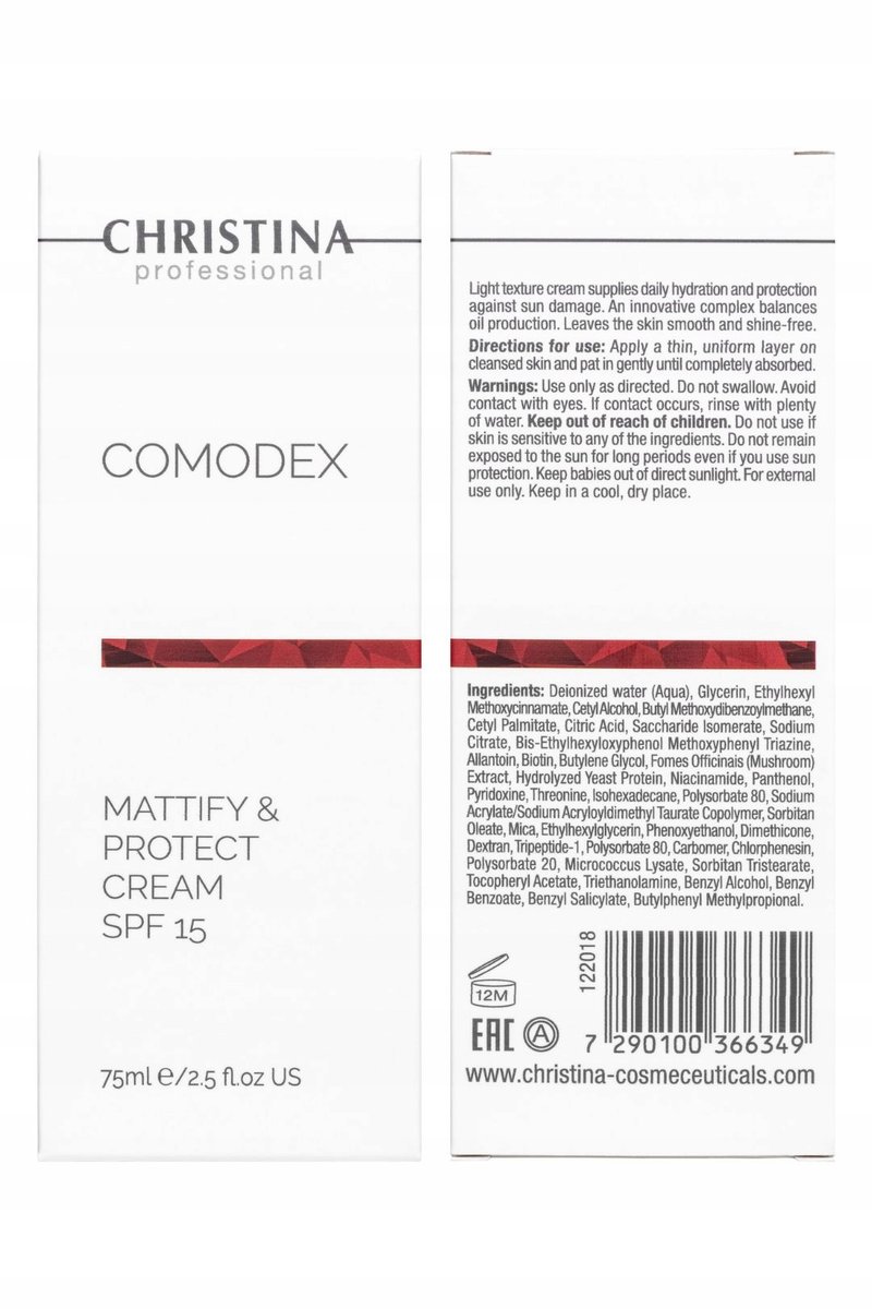 | Nazwa: | Christina, Comodex, Mattify&Protect Cream SPF 15, Matujący krem ochronny SPF 15, 75 ml |