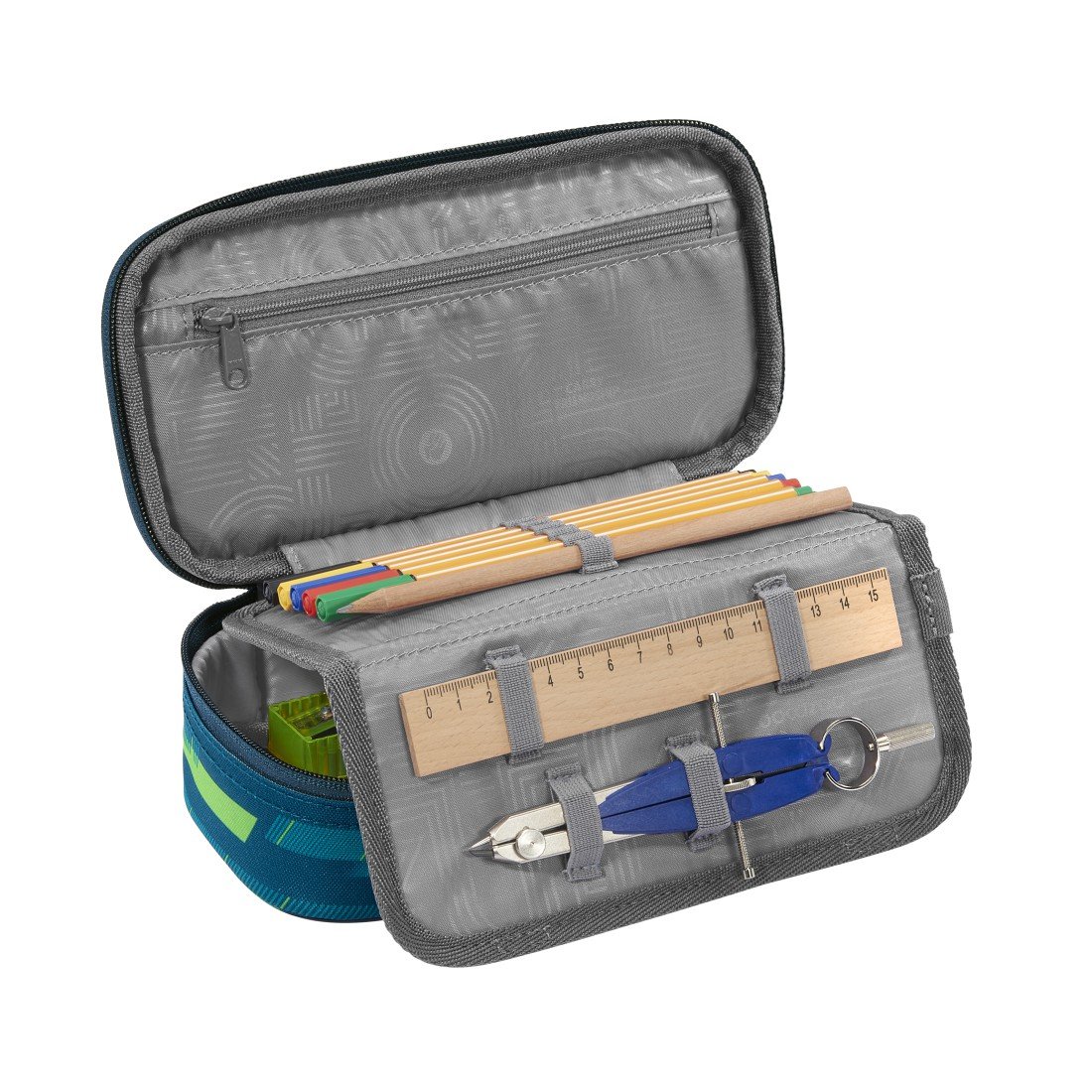 Nożyczki, kredki, linijki i wszystko co tylko zawsze nosisz w piórniku ląduje w pojemnej komorze przybornika.